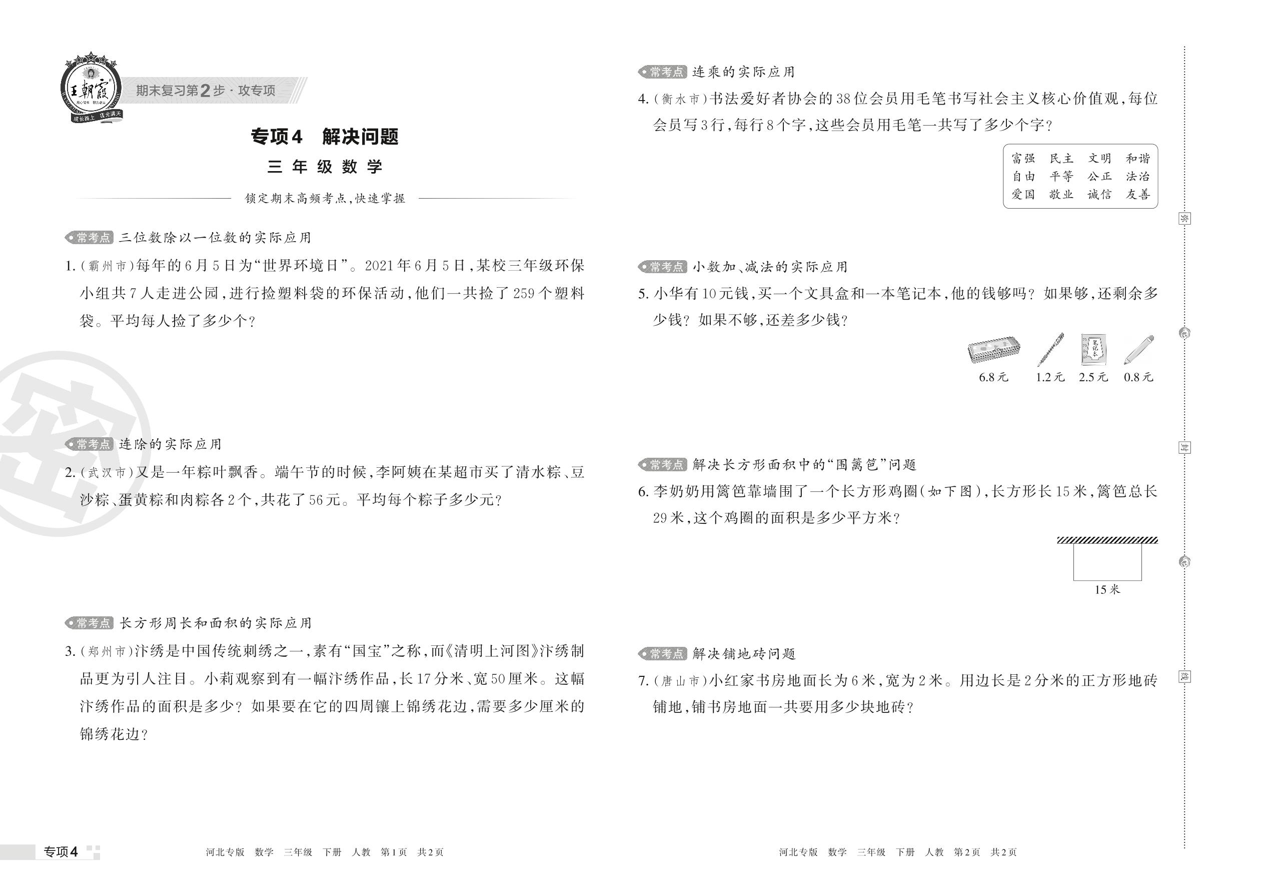 王朝霞期末专项卷——解决问题三年级下册数学(人教版)【4】