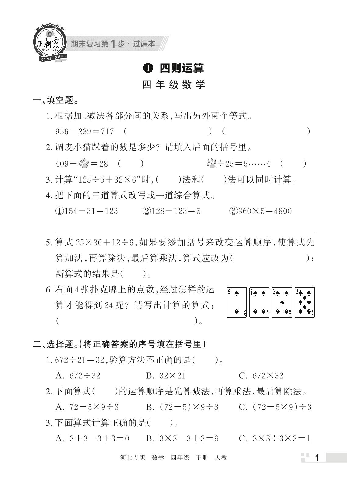 王朝霞期末过课本——1 四则运算四年级下册数学(人教版)