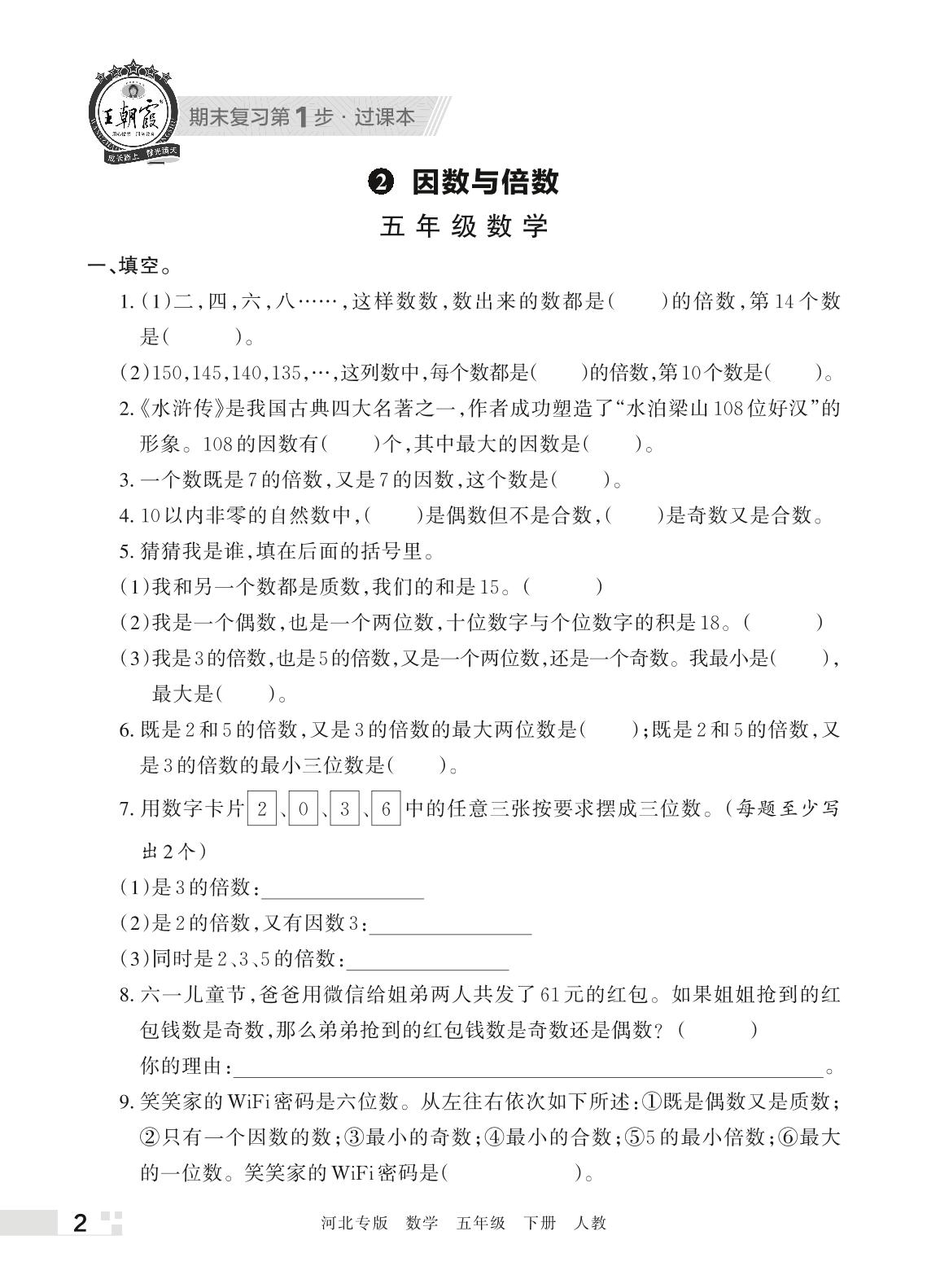 王朝霞期末过课本——2 因数与倍数五年级下册数学(人教版)