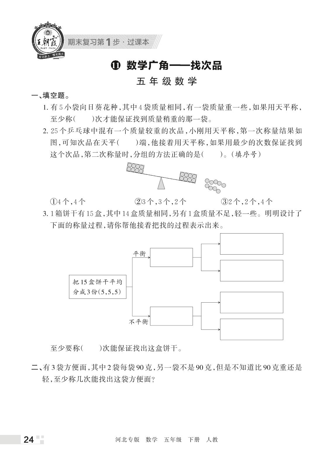 王朝霞期末过课本——11 数学广角:找次品五年级下册数学(人教版)
