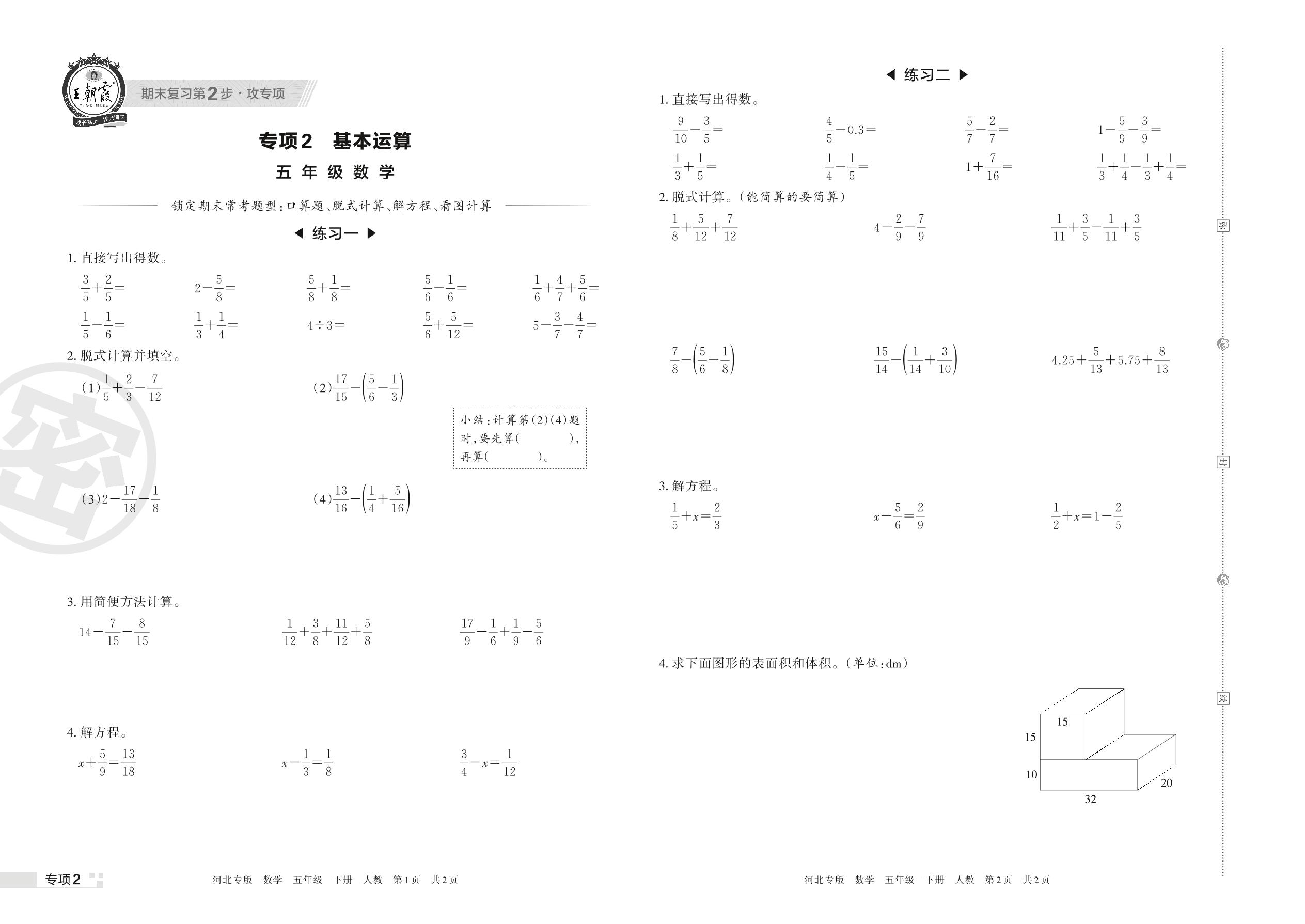 王朝霞期末专项卷——基本运算五年级下册数学(人教版)【2】