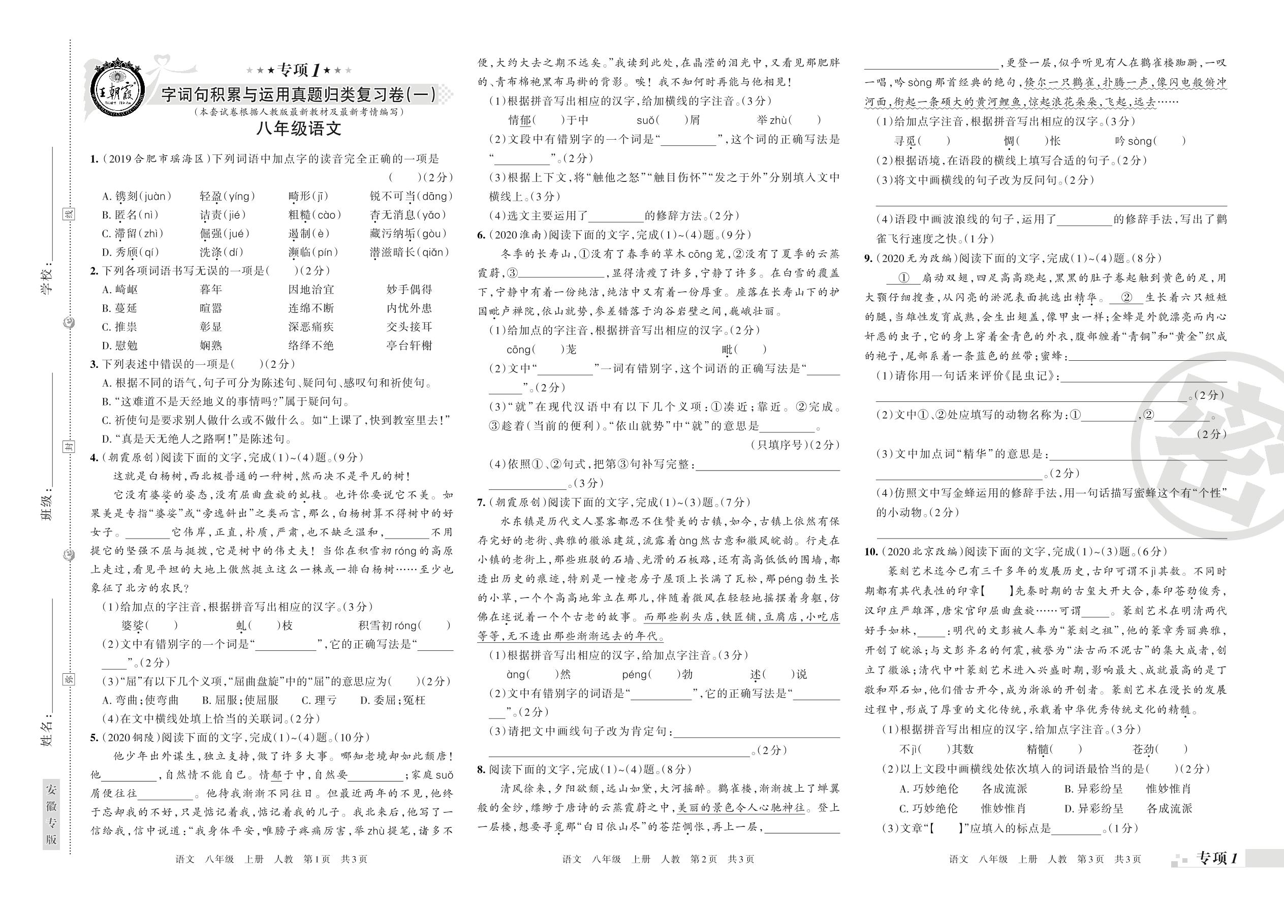 王朝霞期末专项卷——字词句积累与运用真题归类复习八年级上册语文(人教版)_R21080212809【0】