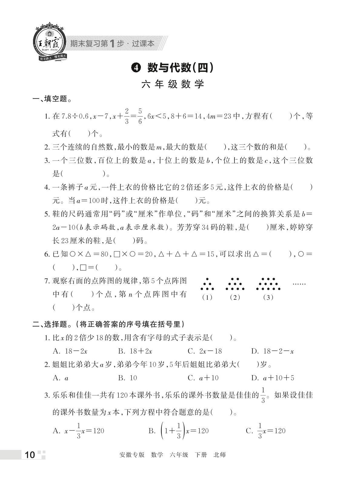 王朝霞期末过课本——4 数与代数(四)六年级下册数学(北师版)