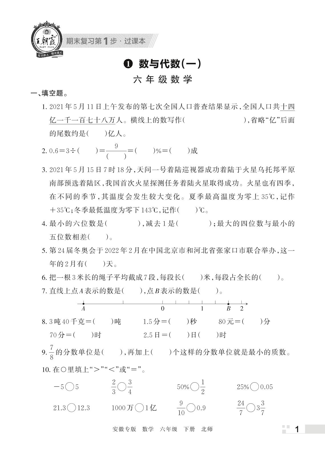 王朝霞期末过课本——1 数与代数(一)六年级下册数学(北师版)