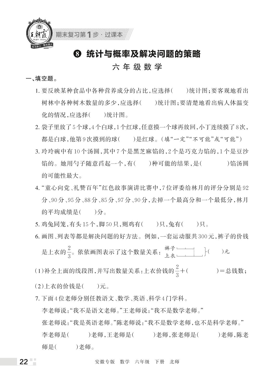 王朝霞期末过课本——8 统计与概率及解决问题的策略六年级下册数学(北师版)