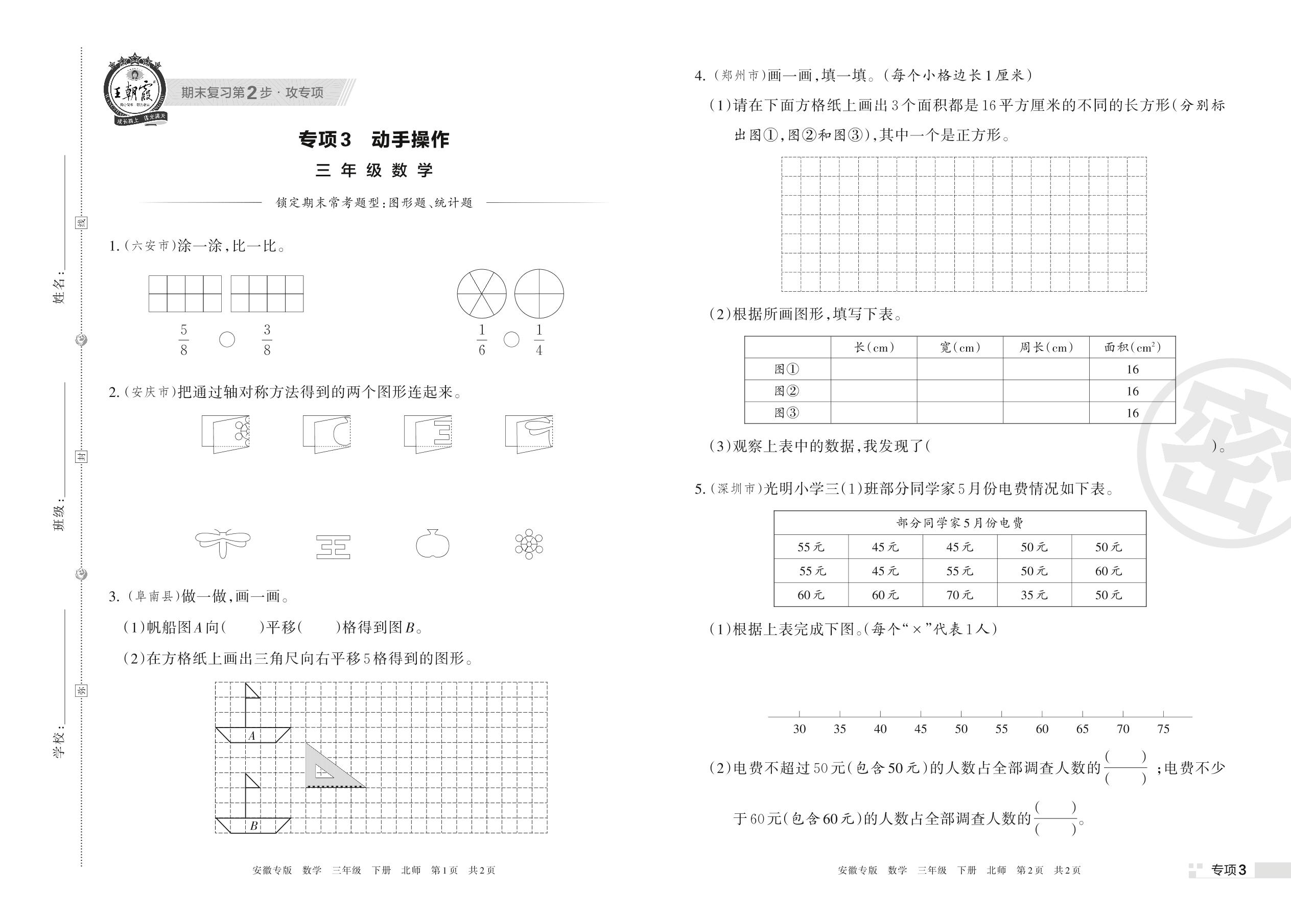 王朝霞期末专项卷——动手操作三年级下册数学(北师版)【3】