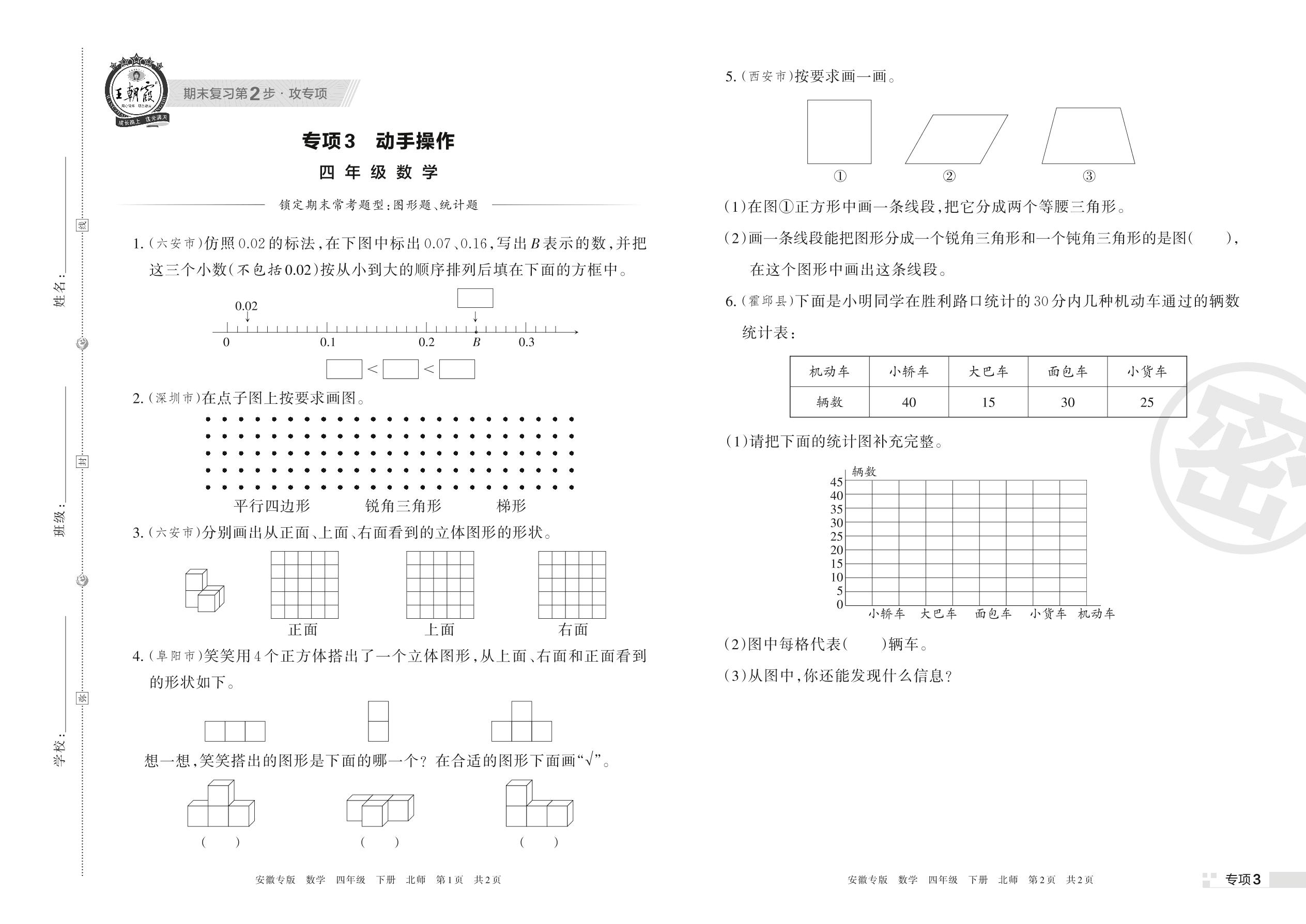 王朝霞期末专项卷——动手操作四年级下册数学(北师版)【3】
