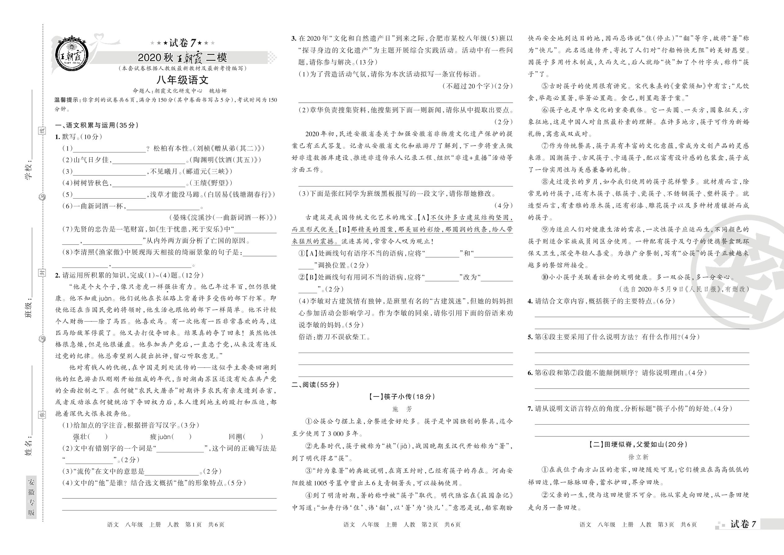 王朝霞期末模拟卷八年级上册语文(人教版)_R21080212935【7】