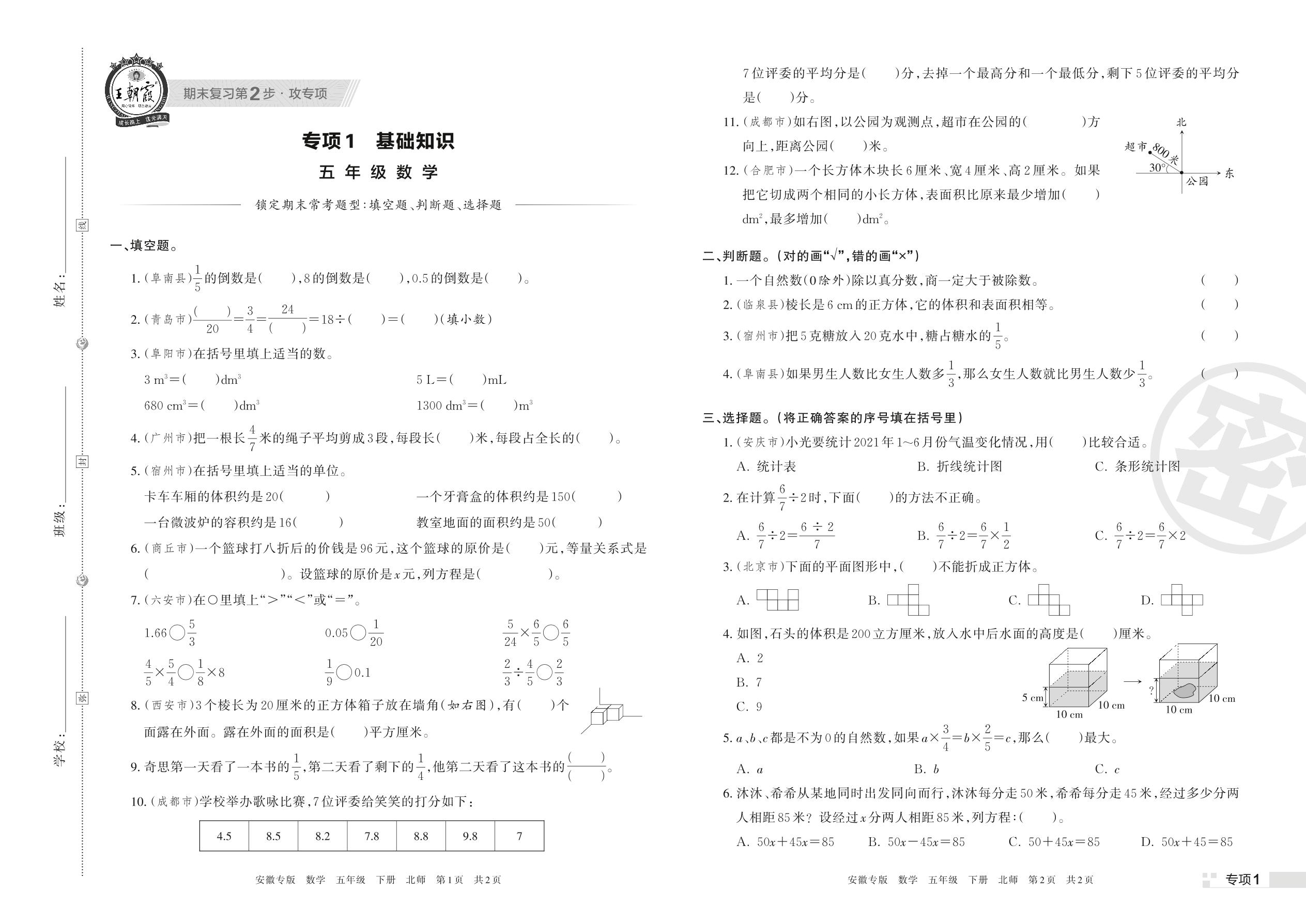 王朝霞期末专项卷——基础知识五年级下册数学(北师版)【1】