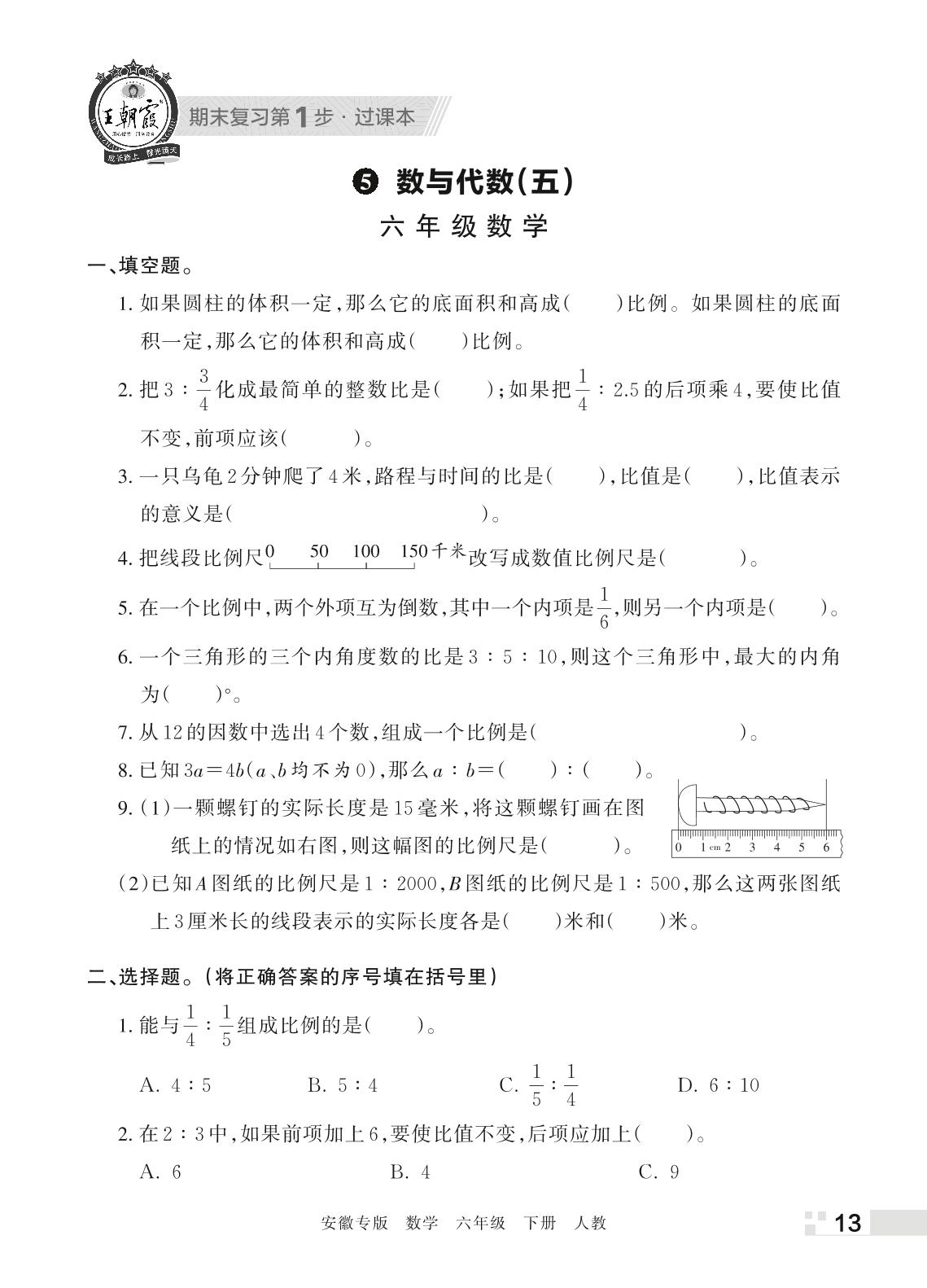 王朝霞期末过课本——5 数与代数(五)六年级下册数学(人教版)_R220326142337083