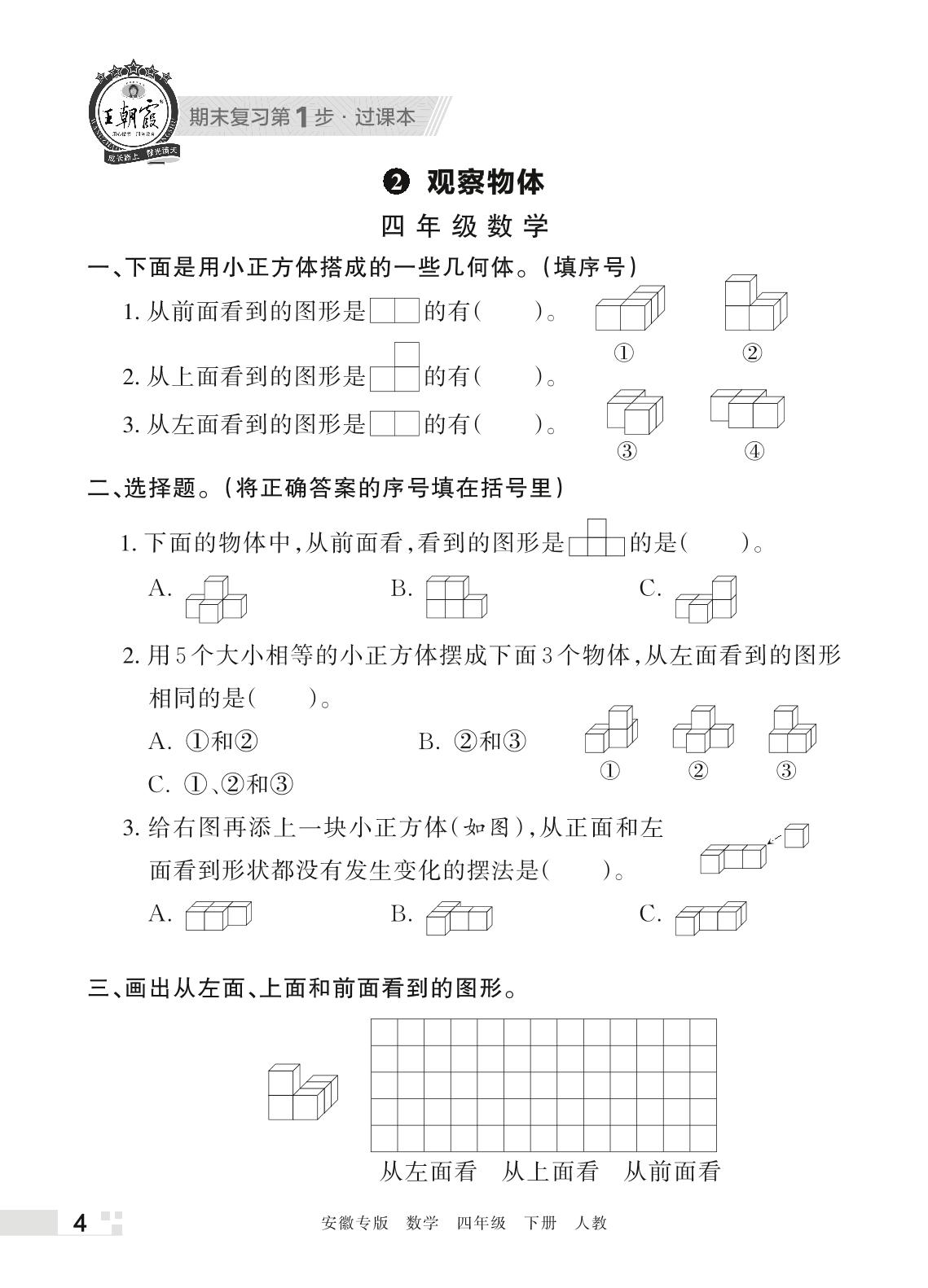 王朝霞期末过课本——2 观察物体四年级下册数学(人教版)_R220326145010252