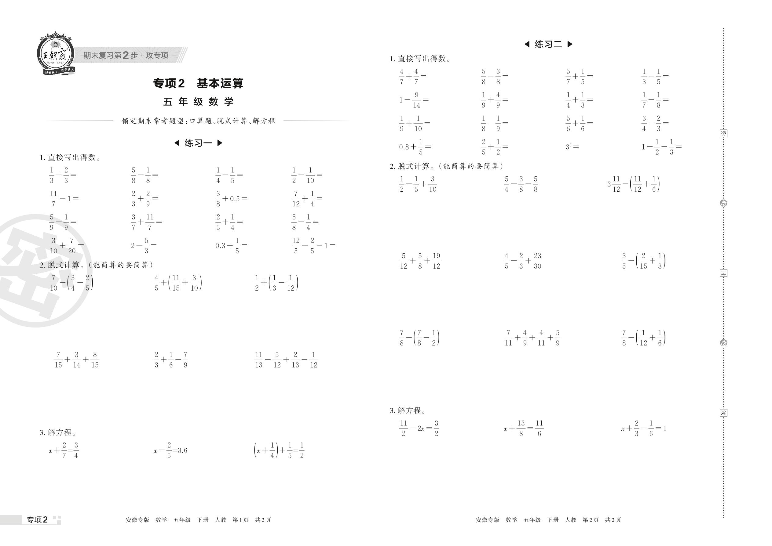 王朝霞期末专项卷——基本运算五年级下册数学(人教版)_R220326150100443【2】