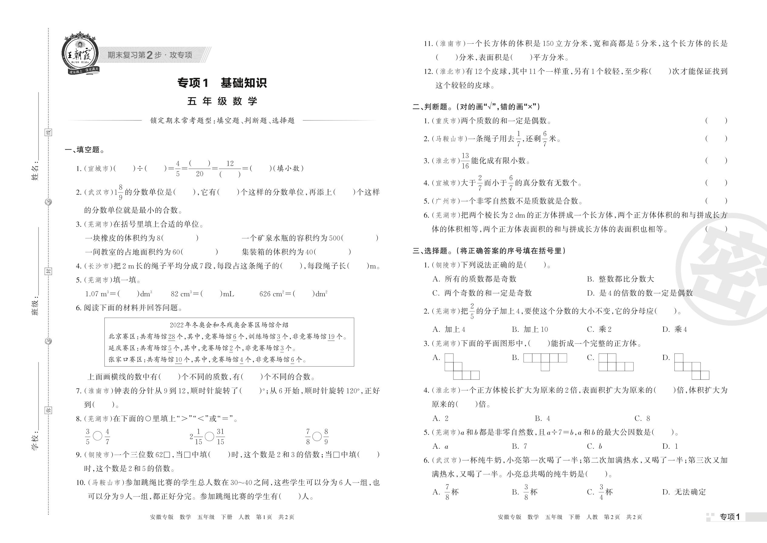 王朝霞期末专项卷——基础知识五年级下册数学(人教版)_R220326150100633【1】