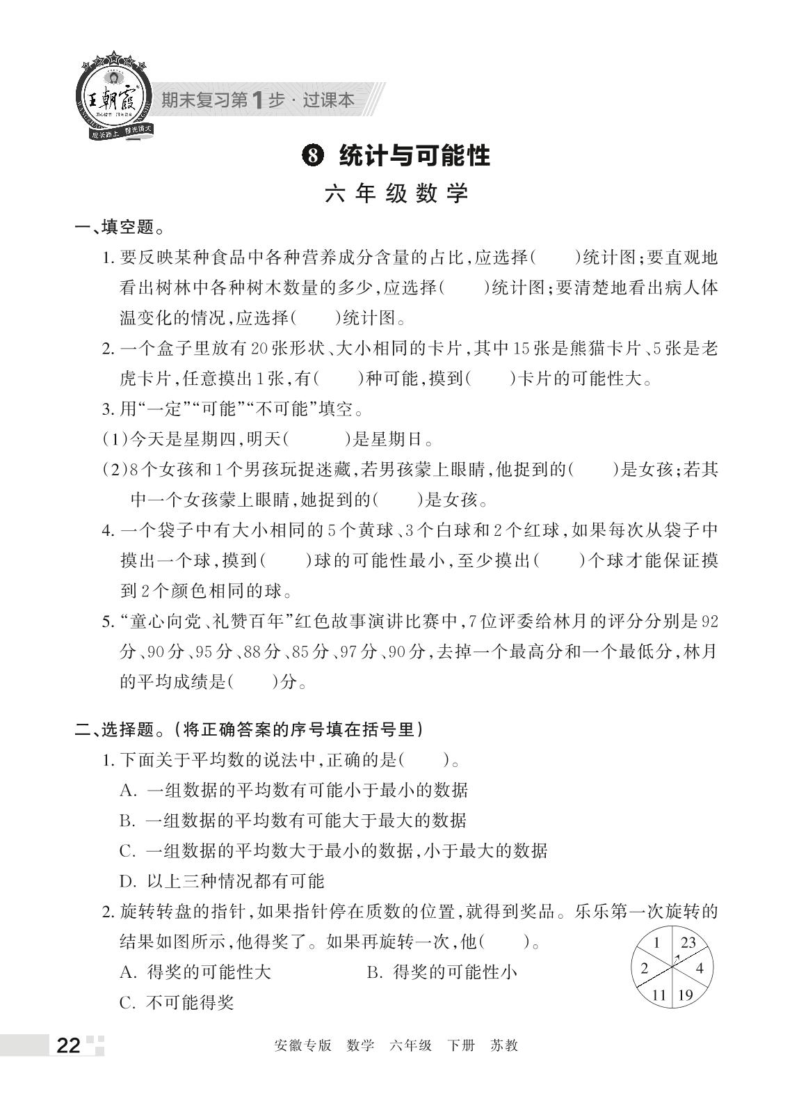 王朝霞期末过课本——8 统计与可能性六年级下册数学(苏教版)
