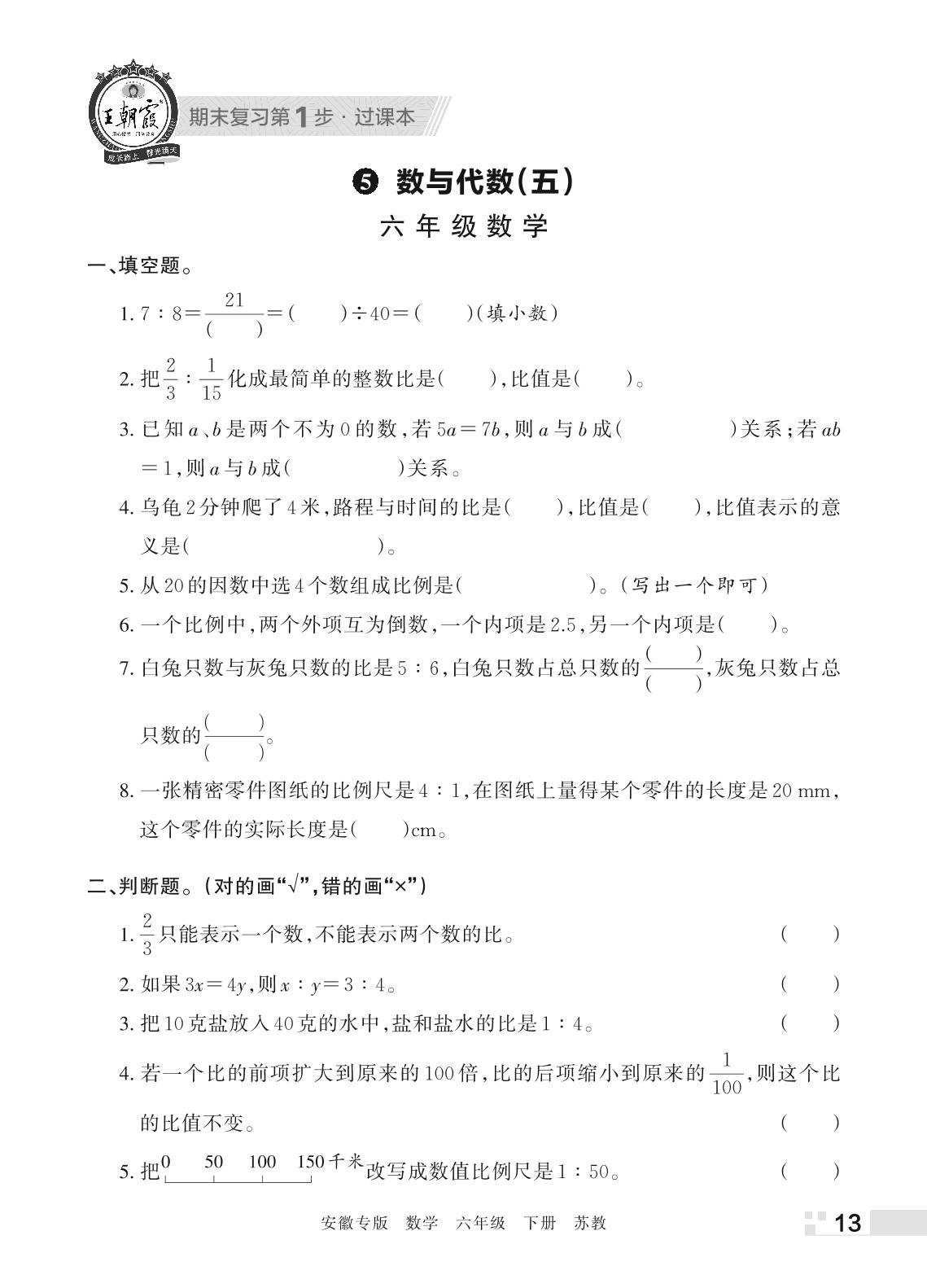 王朝霞期末过课本——5 数与代数(五)六年级下册数学(苏教版)