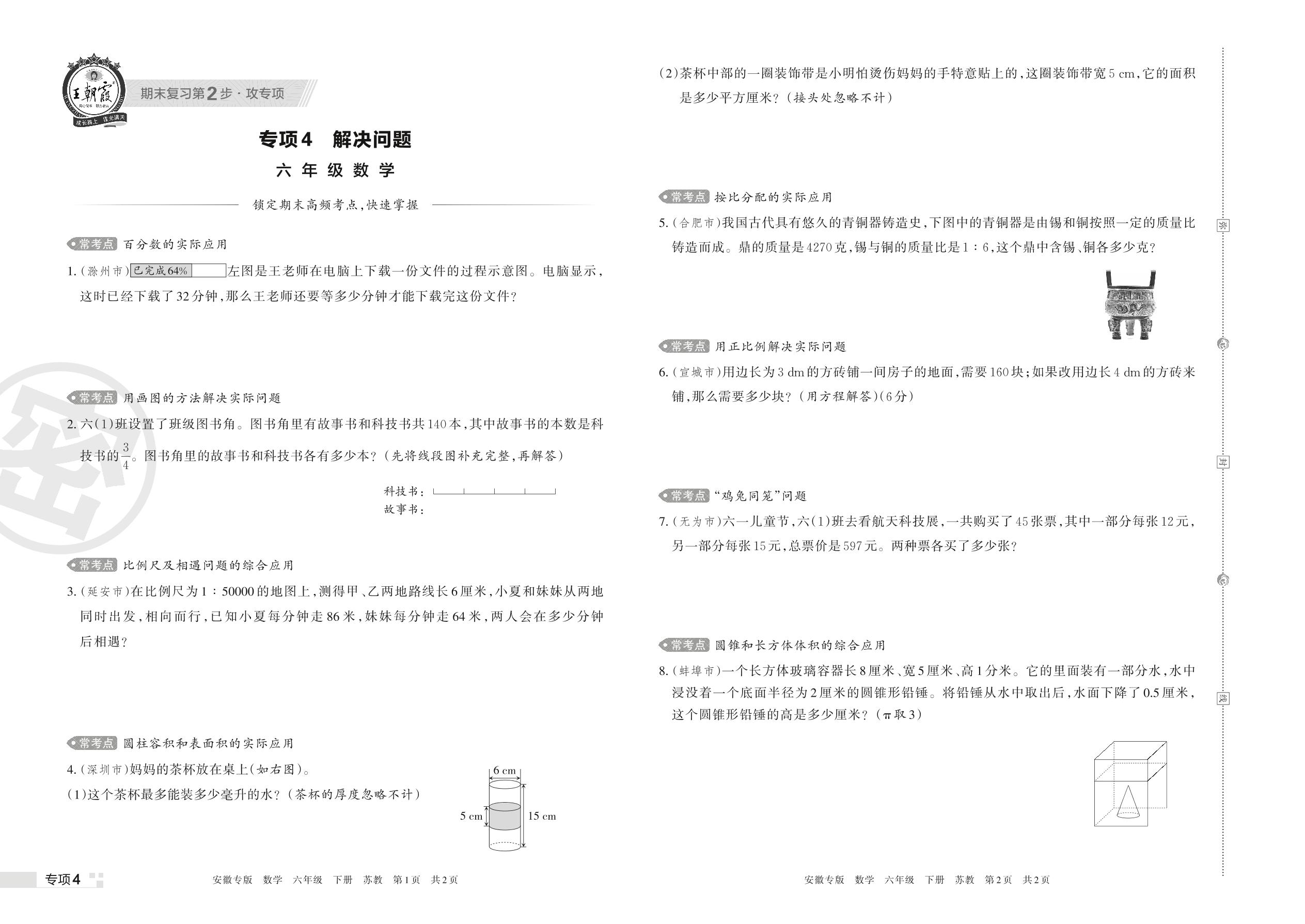 王朝霞期末专项卷——解决问题六年级下册数学(苏教版)【4】