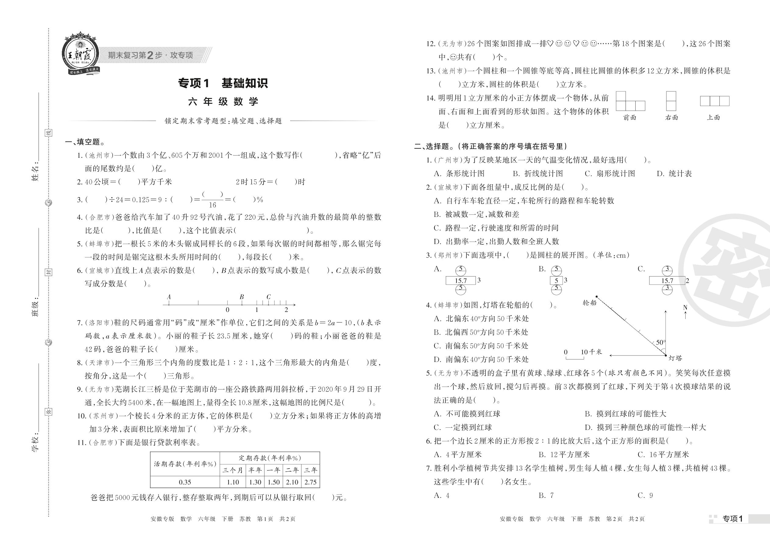王朝霞期末专项卷——基础知识六年级下册数学(苏教版)【1】