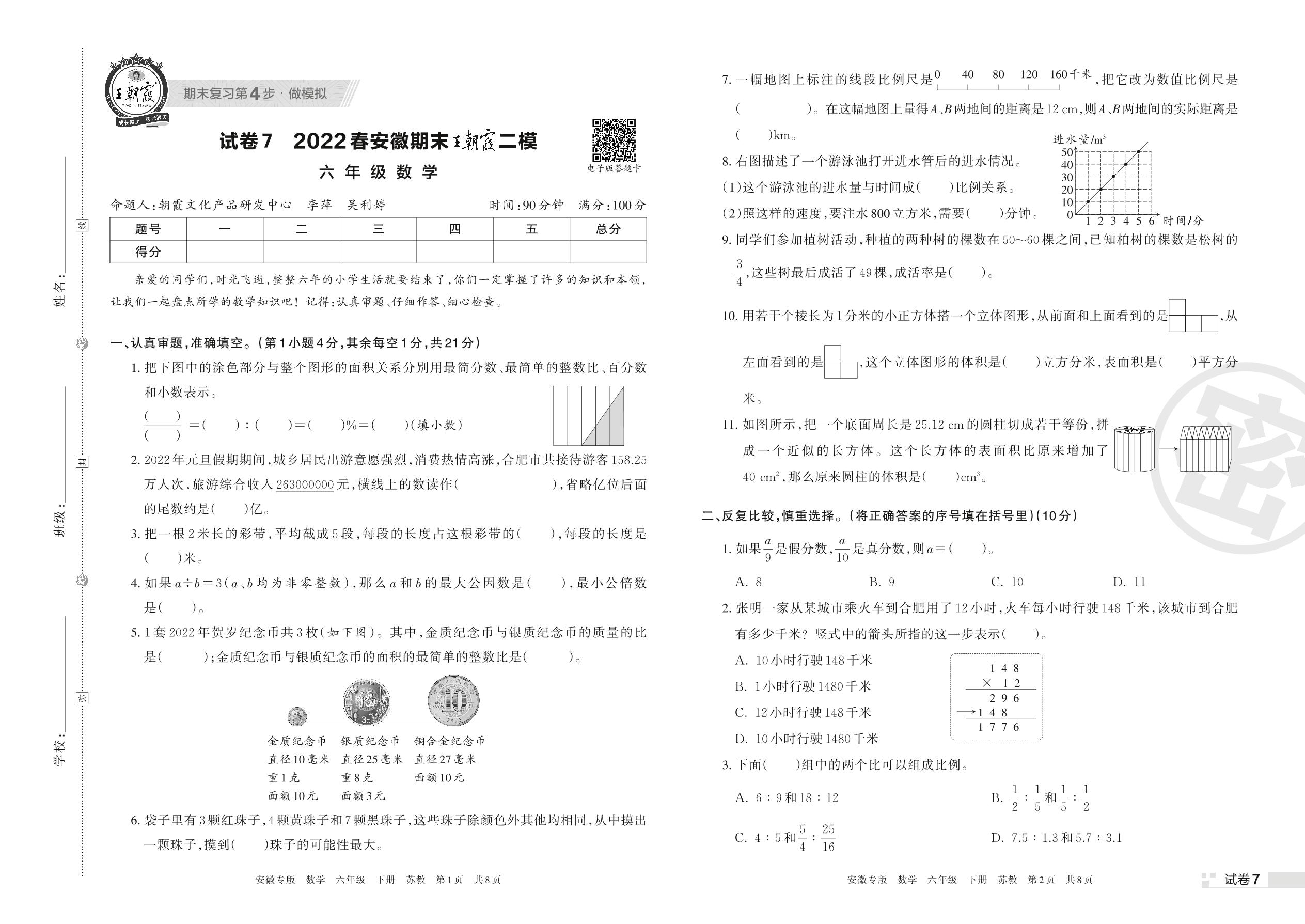 王朝霞期末模拟卷六年级下册数学(苏教版)_R220326172251014【7】