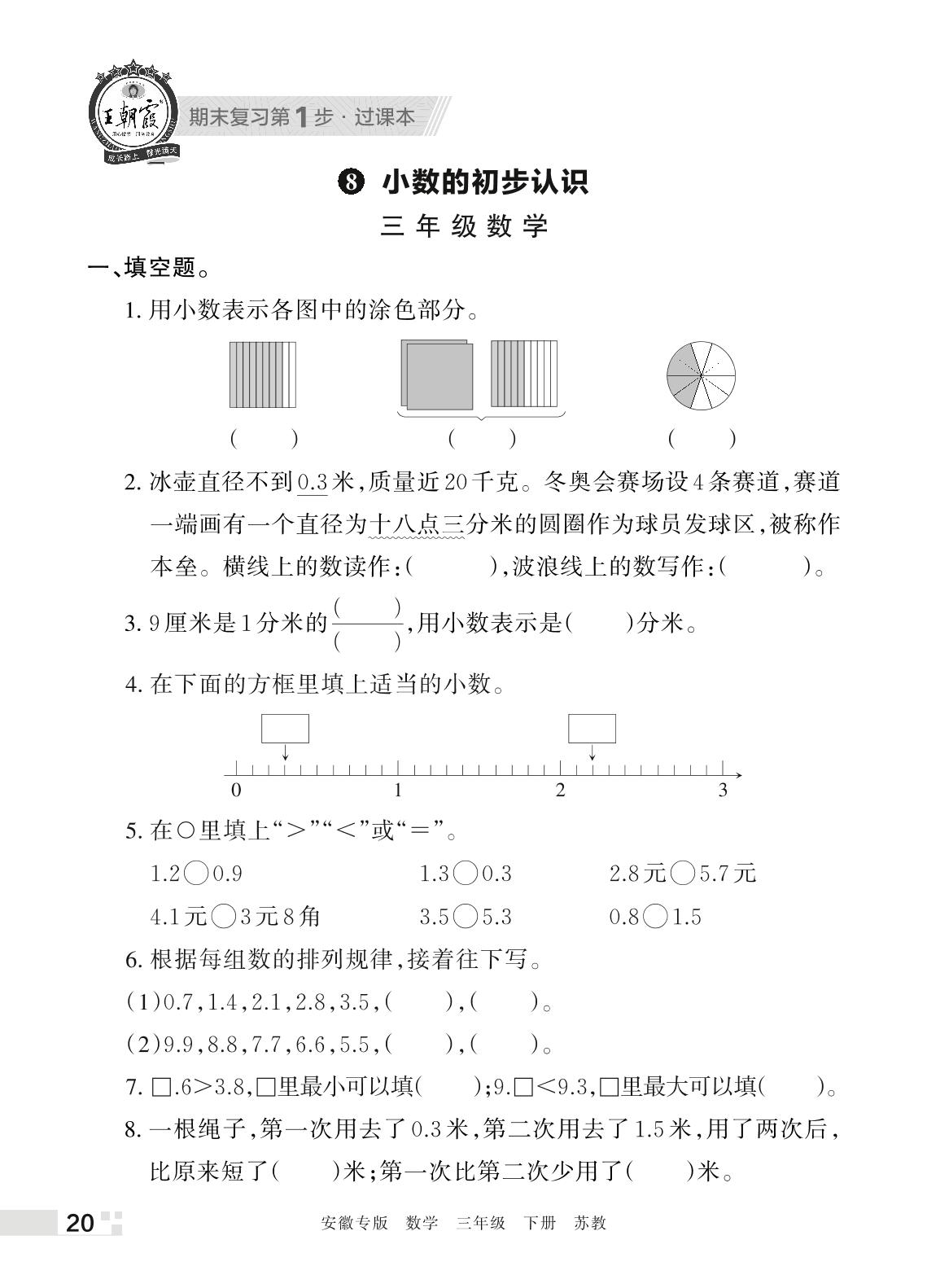 王朝霞期末过课本——8 小数的初步认识三年级下册数学(苏教版)