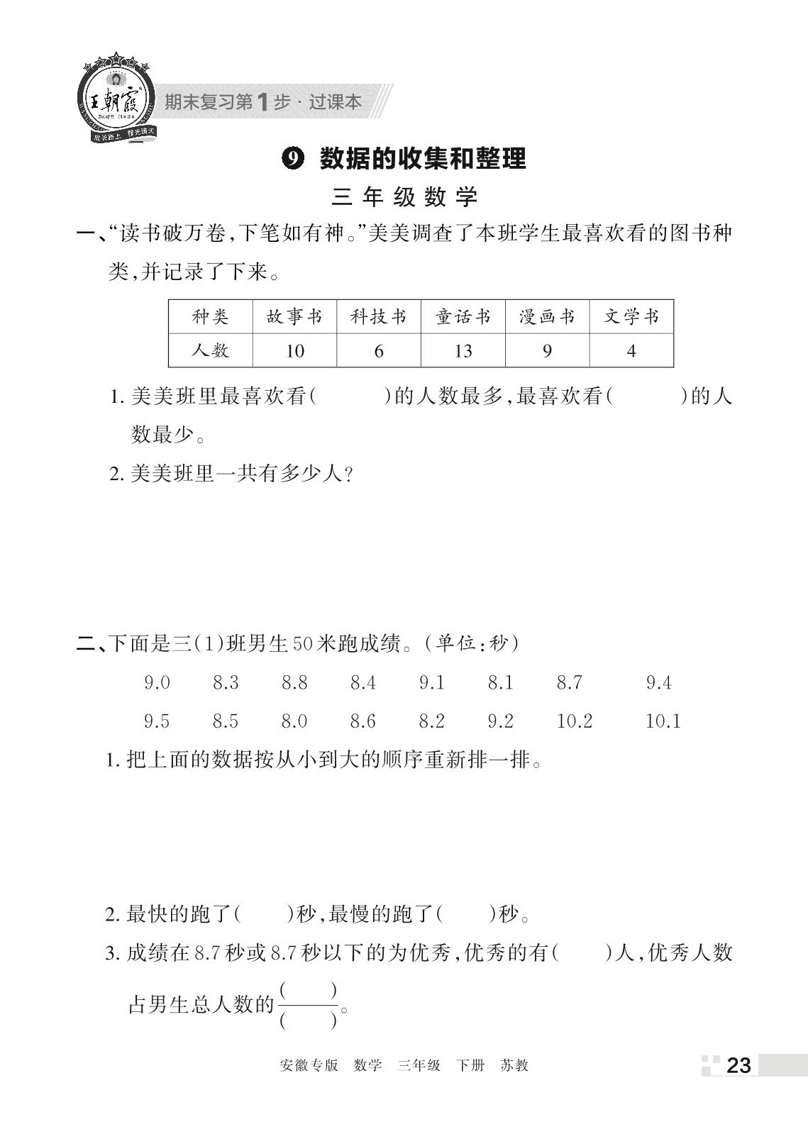 王朝霞期末过课本——9 数据的收集和整理三年级下册数学(苏教版)