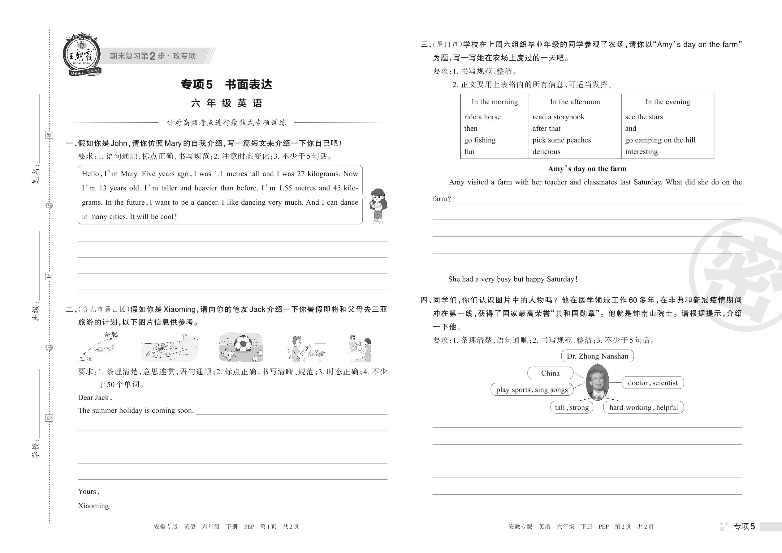 王朝霞期末专项卷——书面表达六年级下册英语(PEP版)【5】
