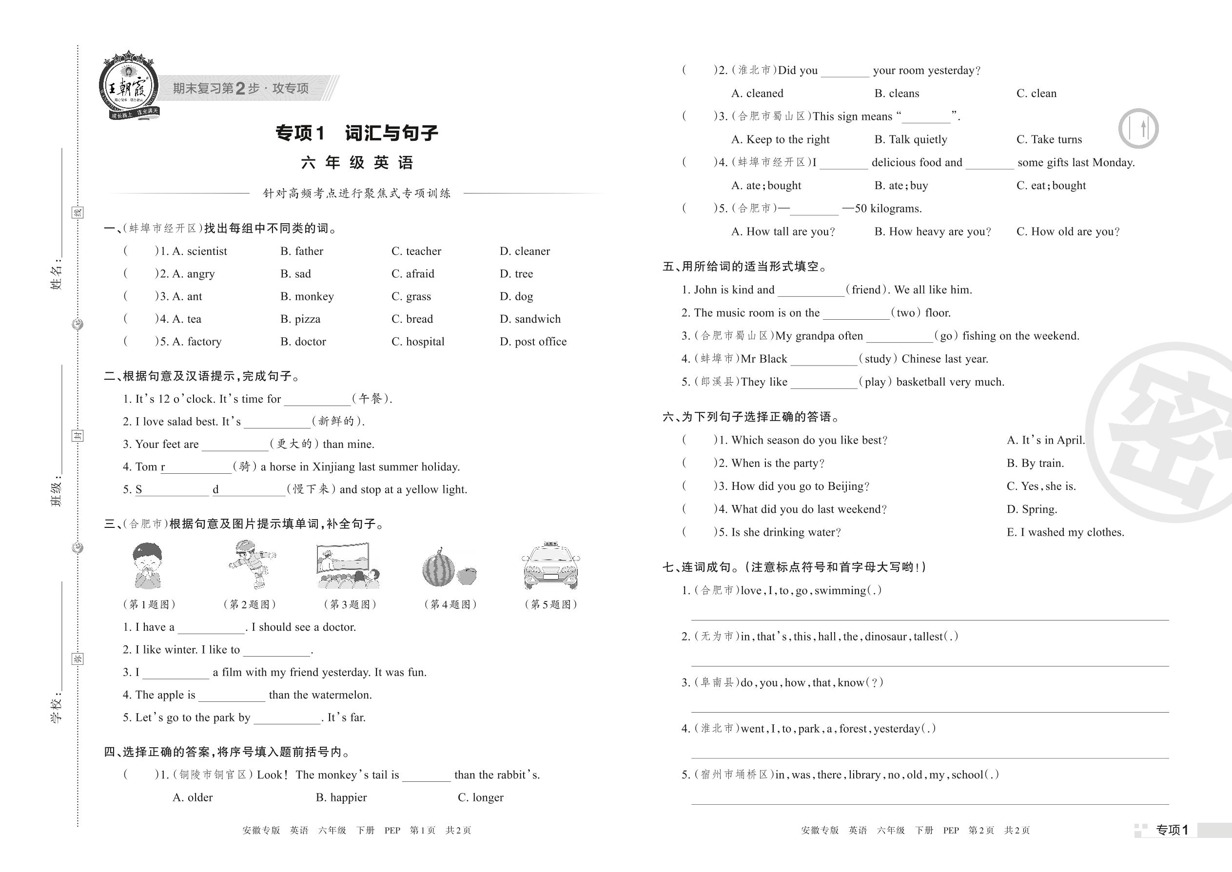 王朝霞期末专项卷——词汇与句子六年级下册英语(PEP版)【1】