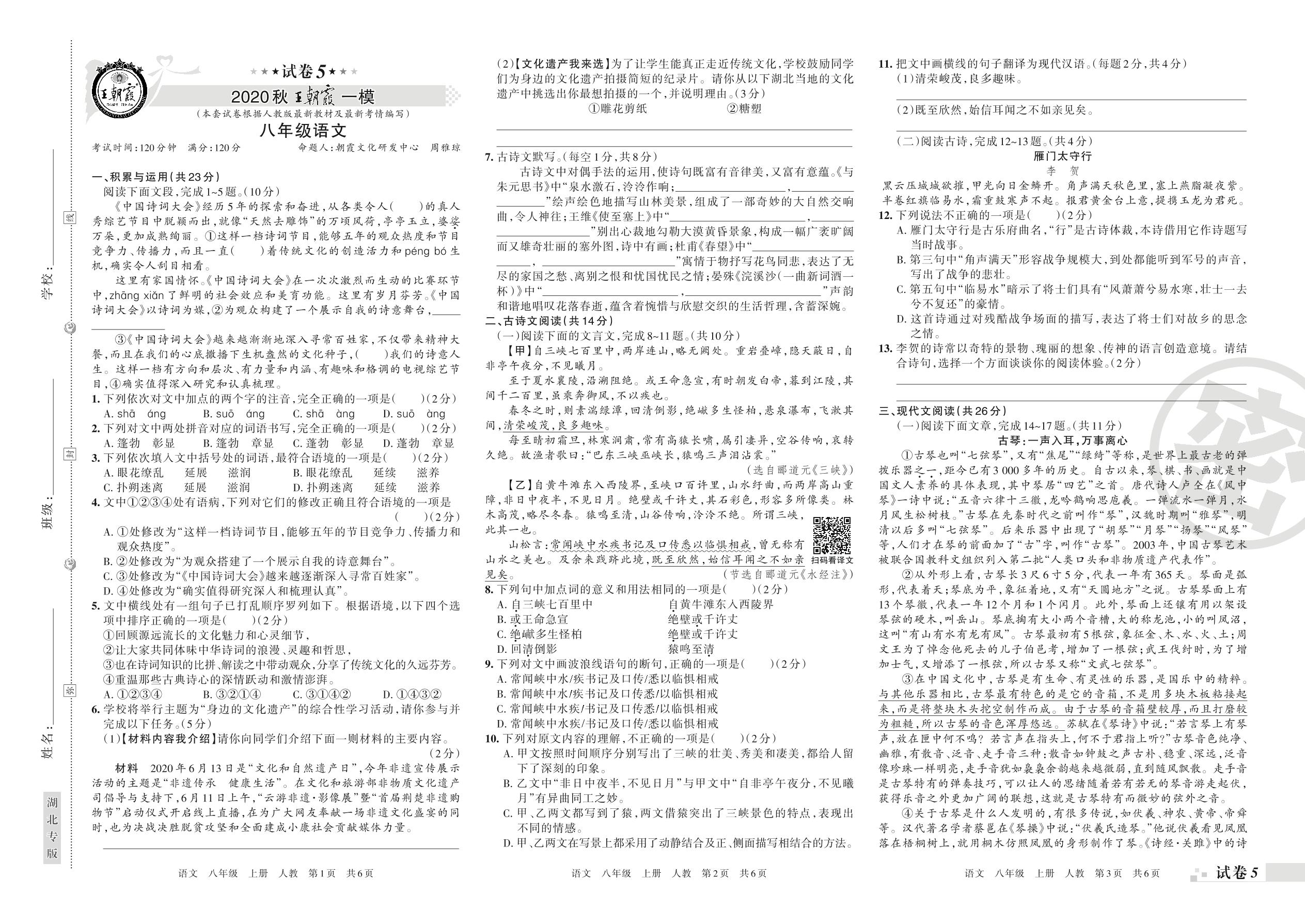 王朝霞期末模拟卷八年级上册语文(人教版)_R21080213444【5】