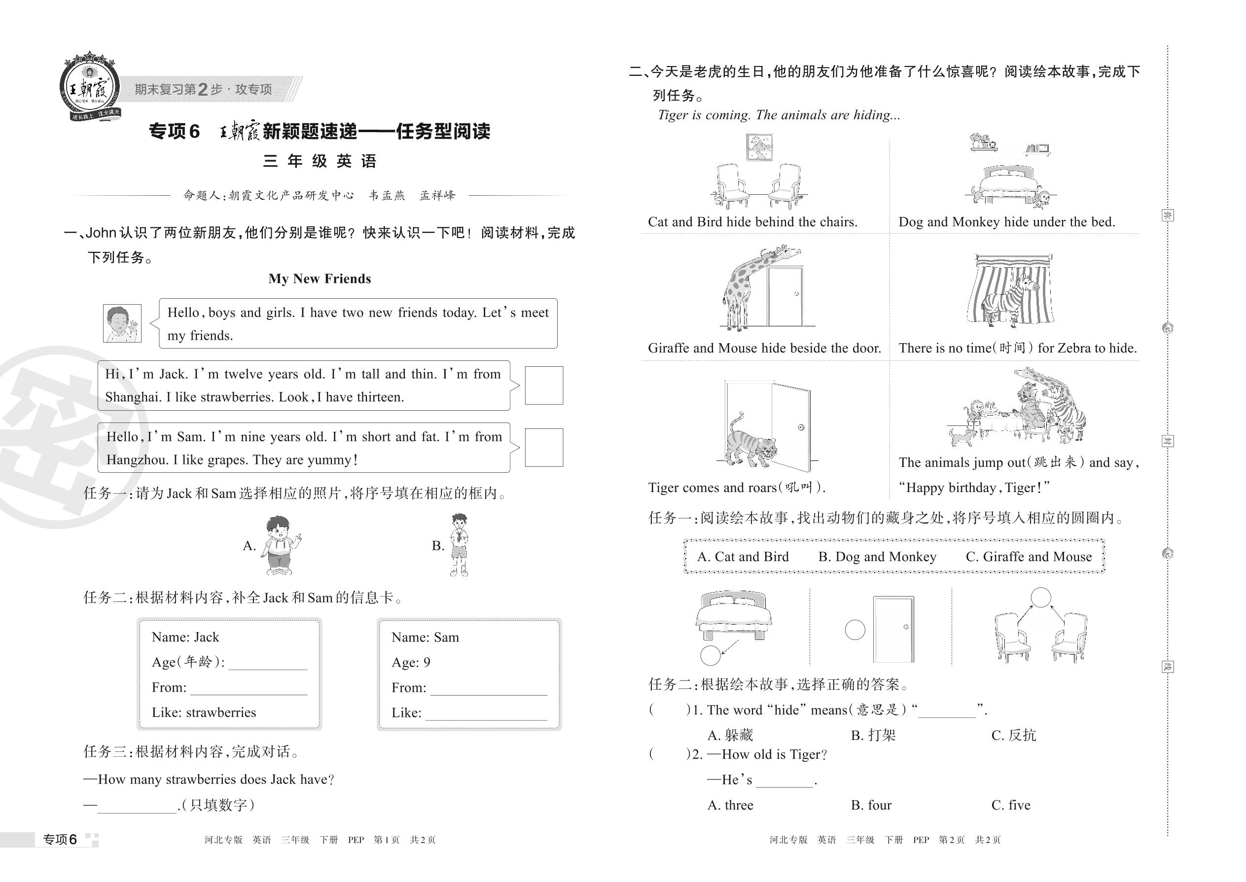 王朝霞期末专项卷——新颖题速递:任务型阅读三年级下册英语(PEP版)_R220328145712644【6】