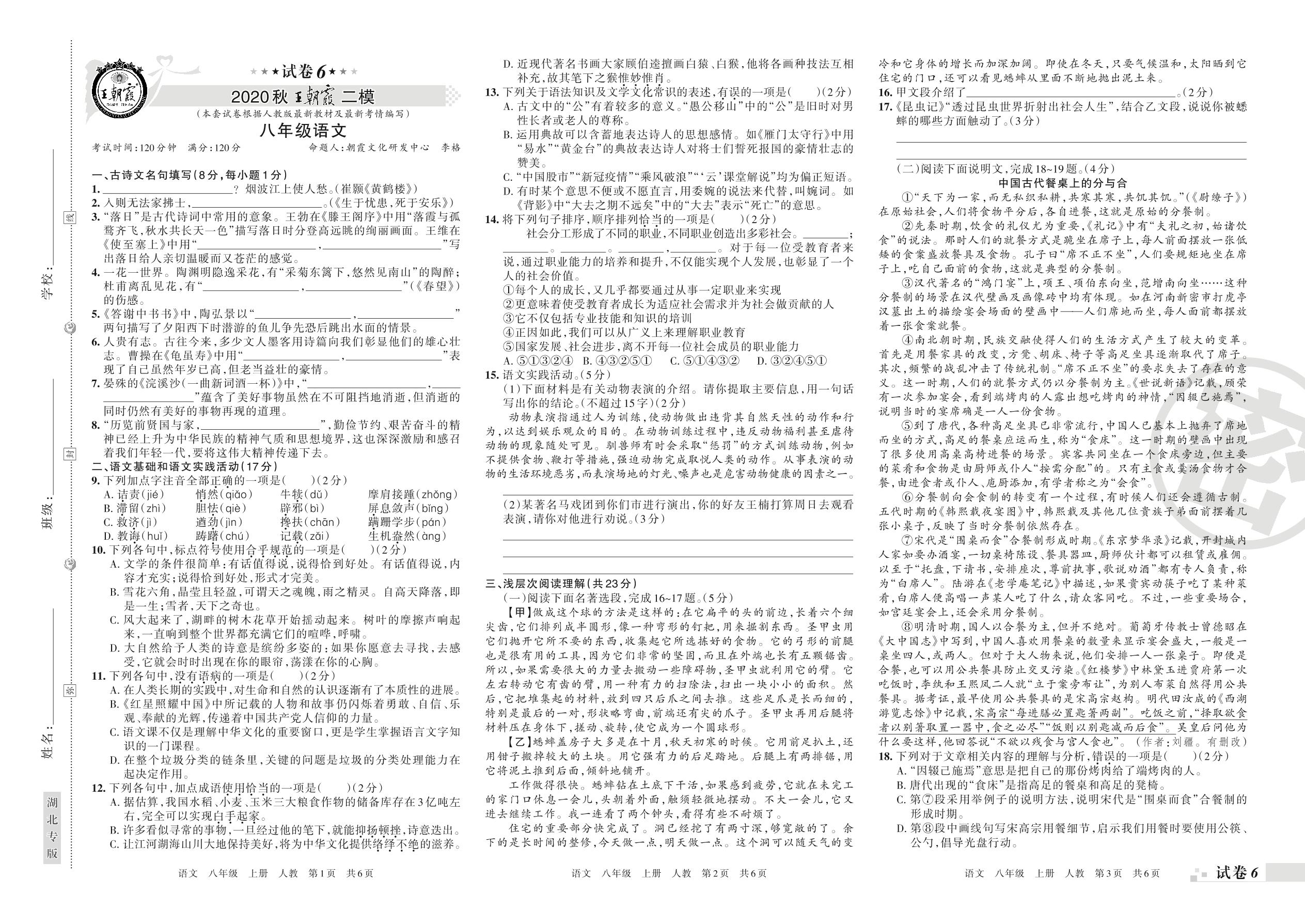 王朝霞期末模拟卷八年级上册语文(人教版)_R21080213502【6】