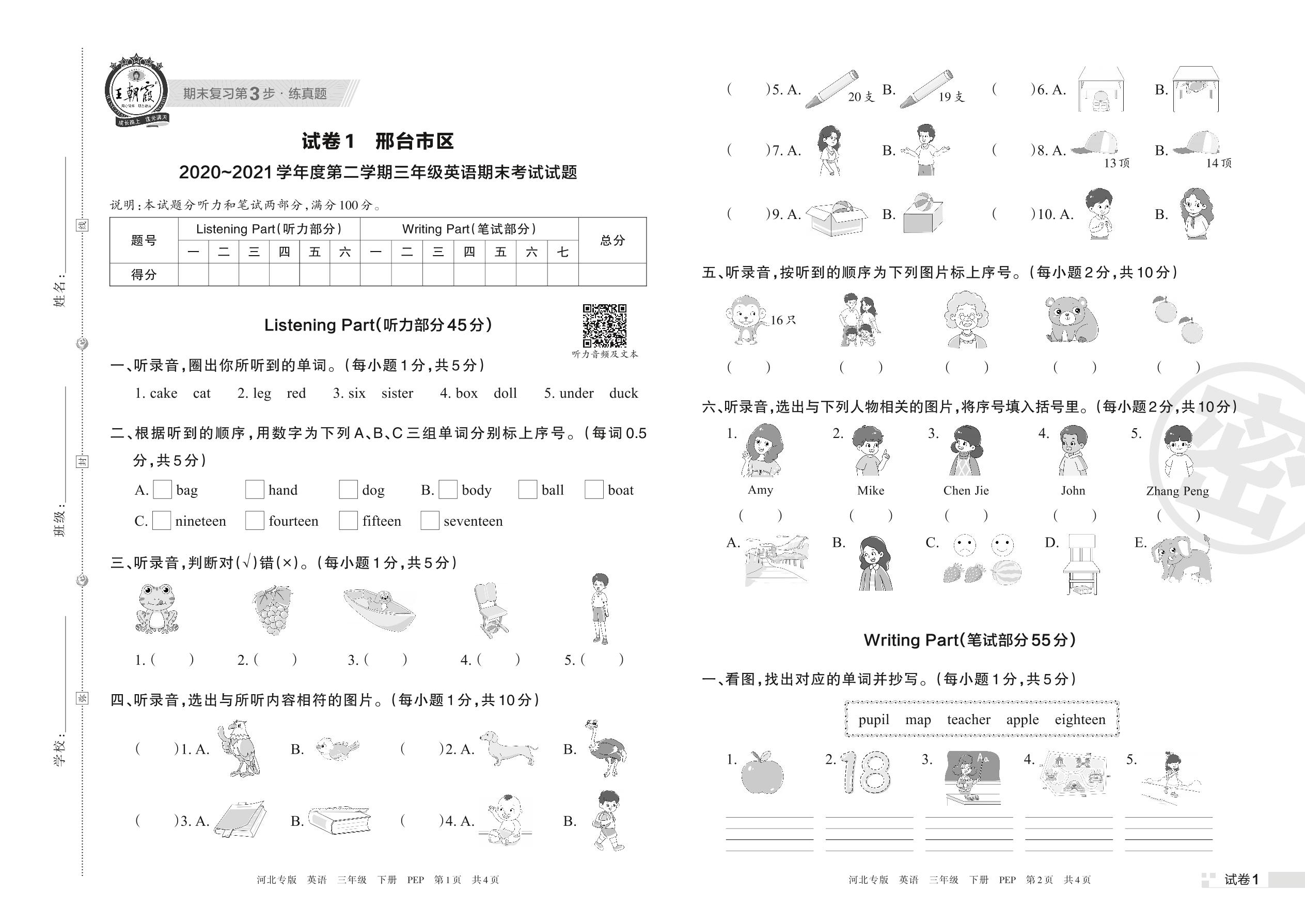 邢台市区2020~2021学年度第二学期三年级英语期末考试试题(PEP版)【1】