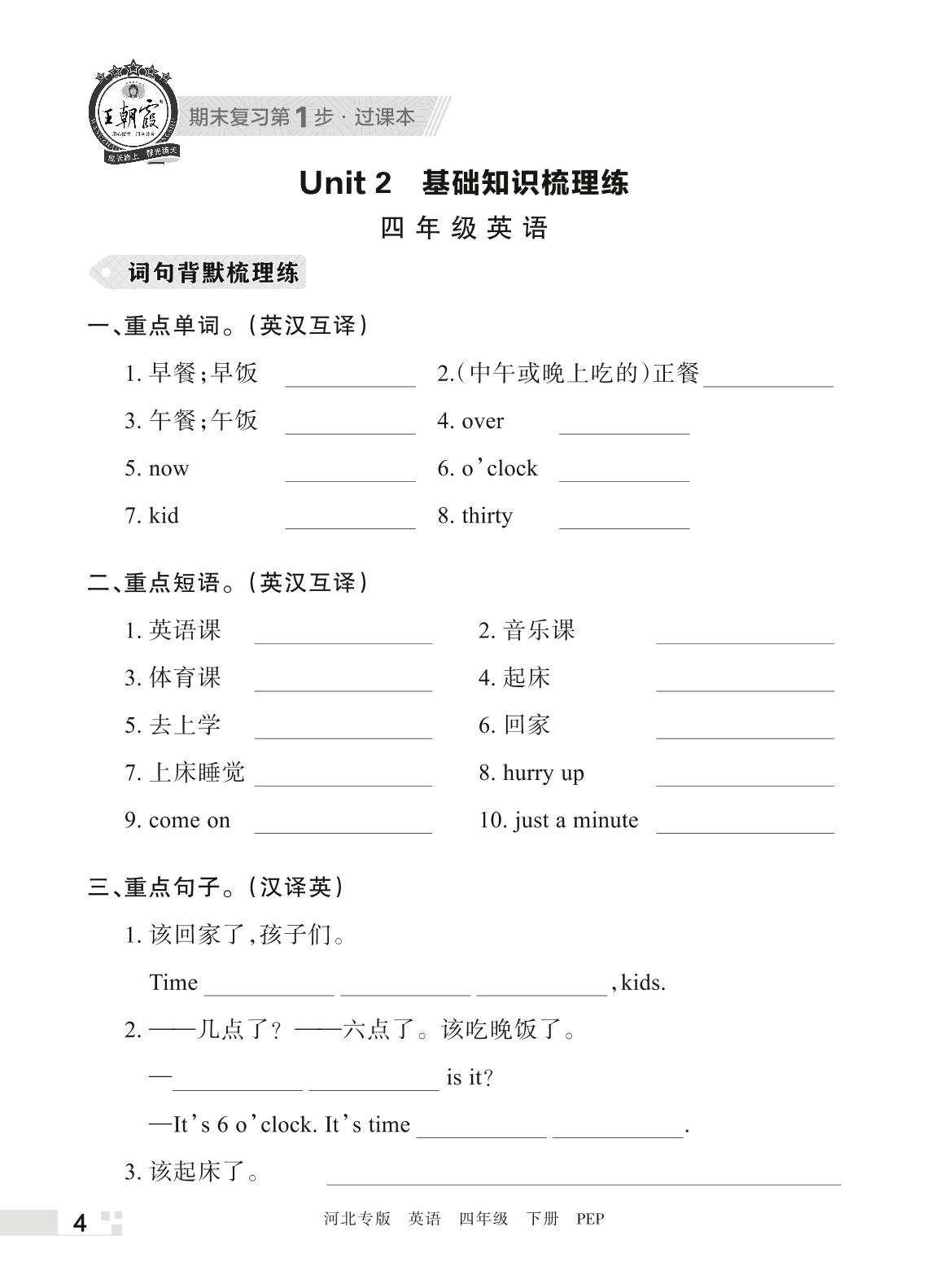 王朝霞期末过课本——Unit 2 基础知识梳理练四年级下册英语(PEP版)_R220328150324058