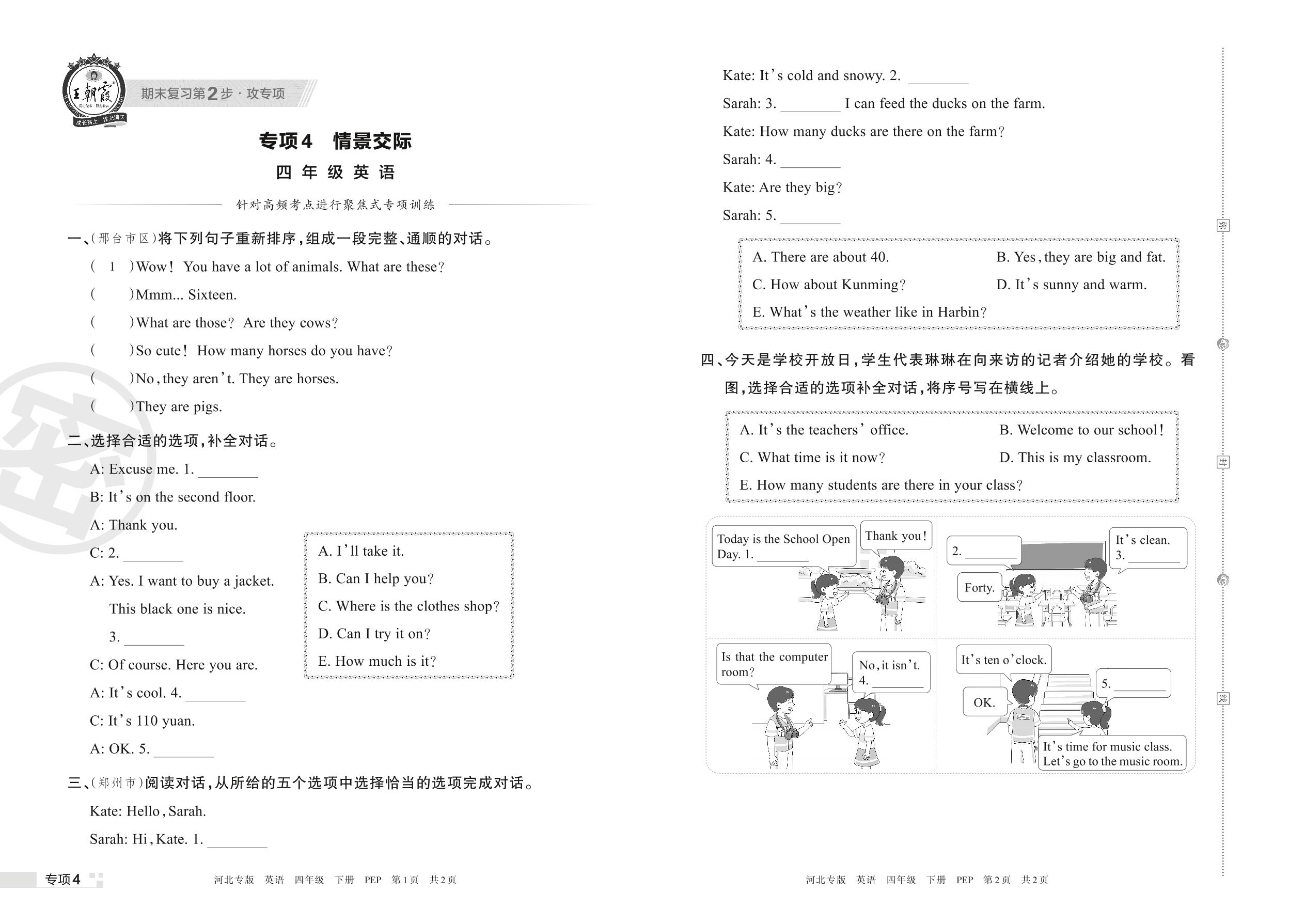 王朝霞期末专项卷——情景交际四年级下册英语(PEP版)_R220328150324803【4】