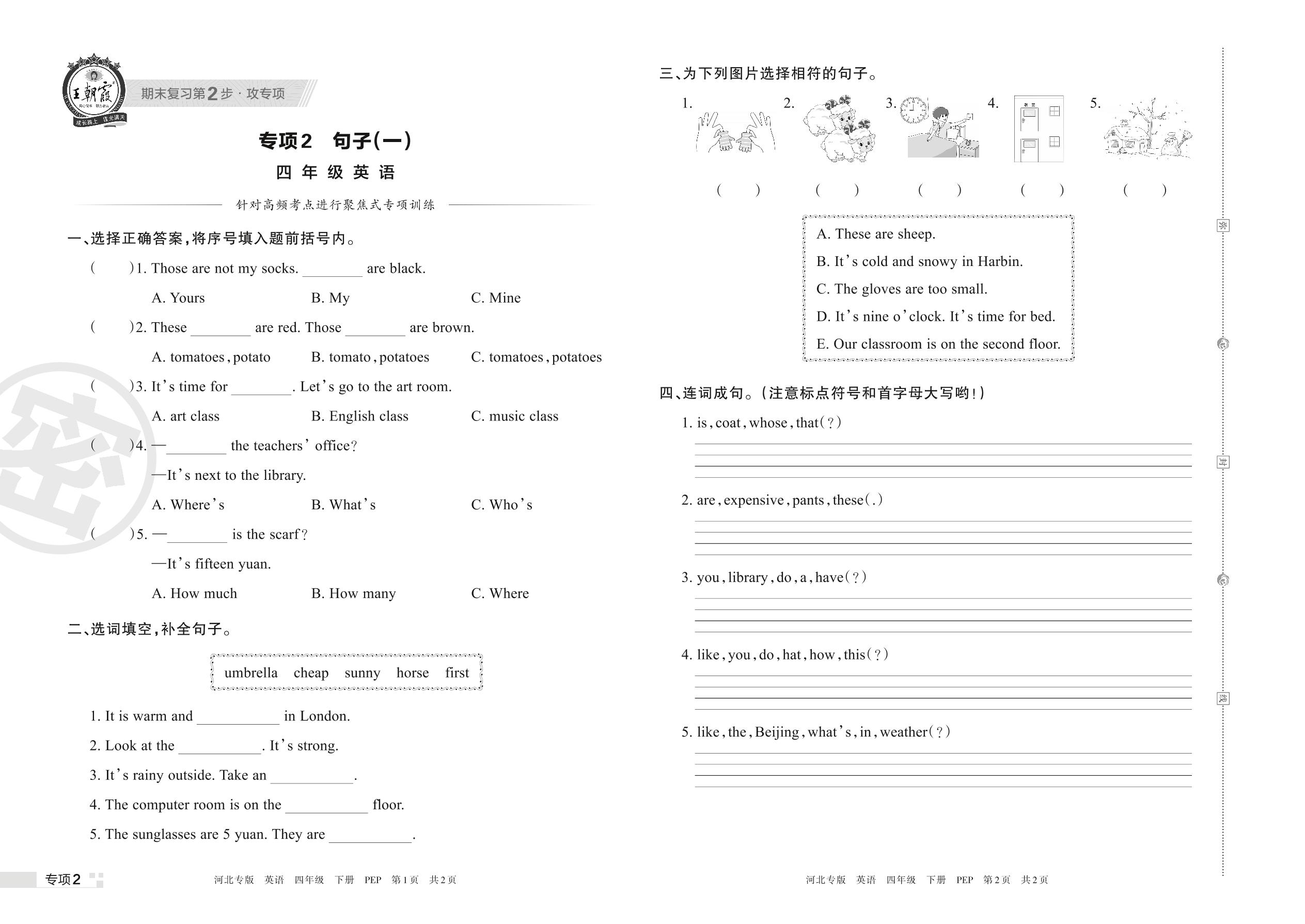 王朝霞期末专项卷——句子(一)四年级下册英语(PEP版)_R220328150324349【2】