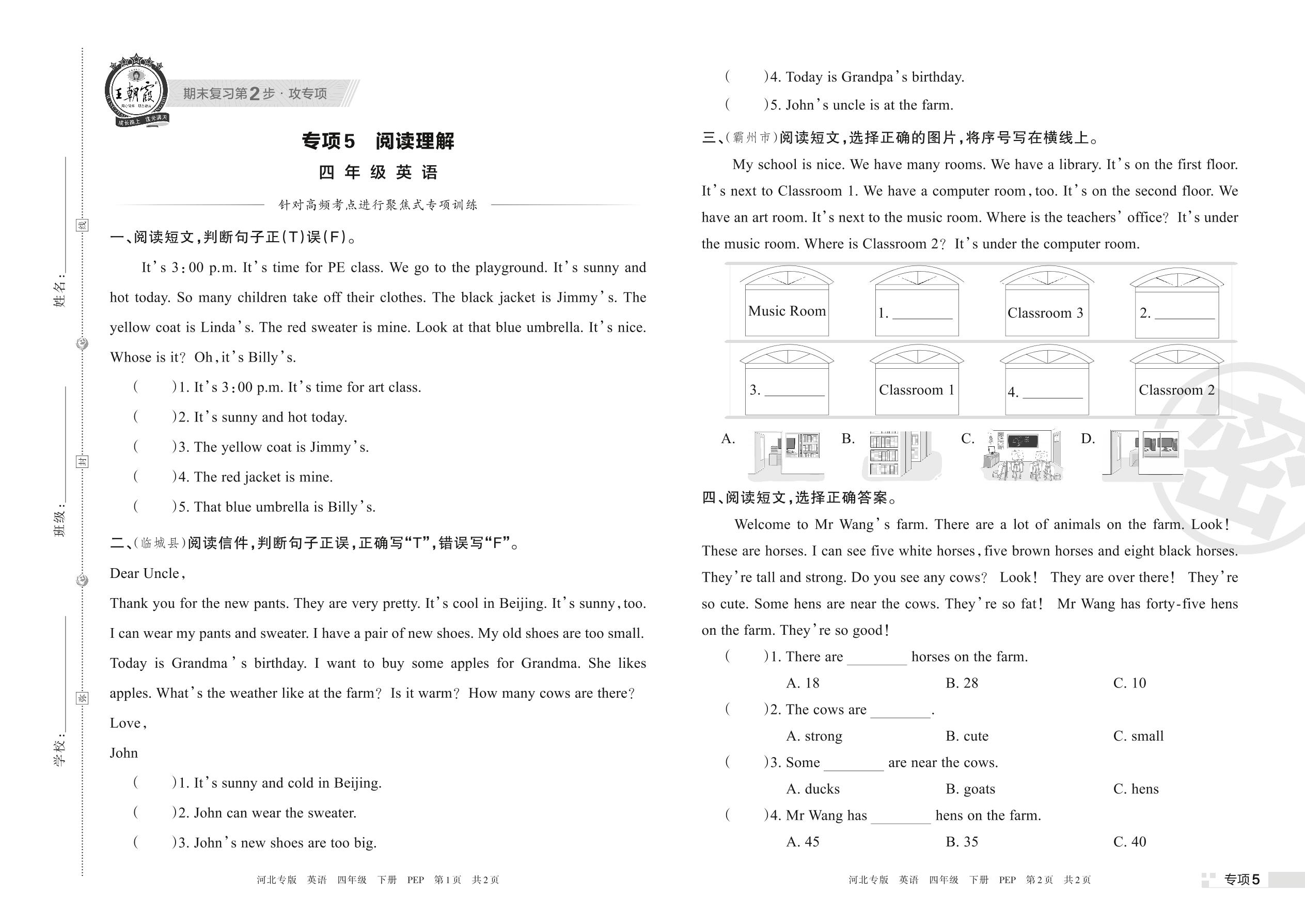 王朝霞期末专项卷——阅读理解四年级下册英语(PEP版)_R220328150325979【5】