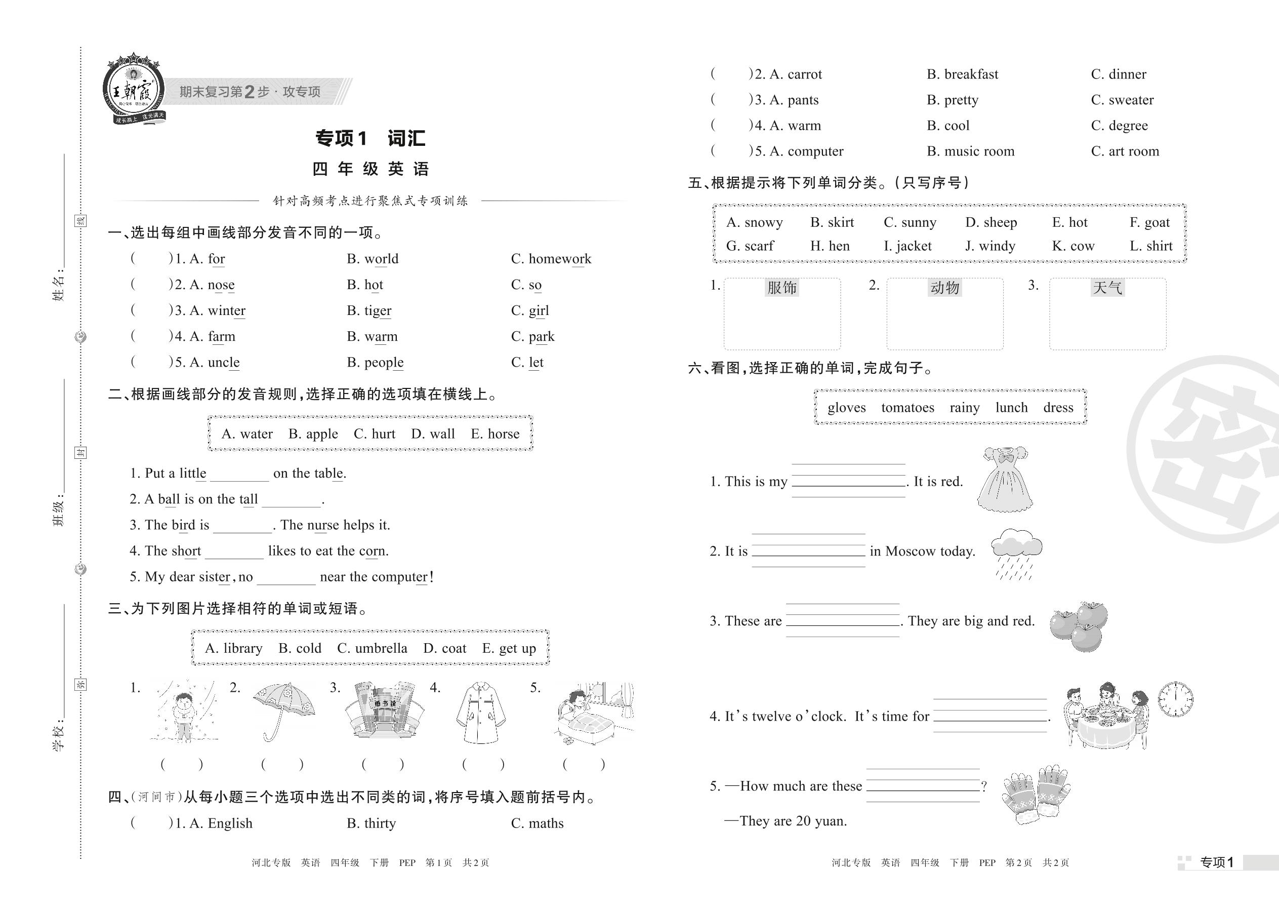 王朝霞期末专项卷——词汇四年级下册英语(PEP版)_R220328150325725【1】
