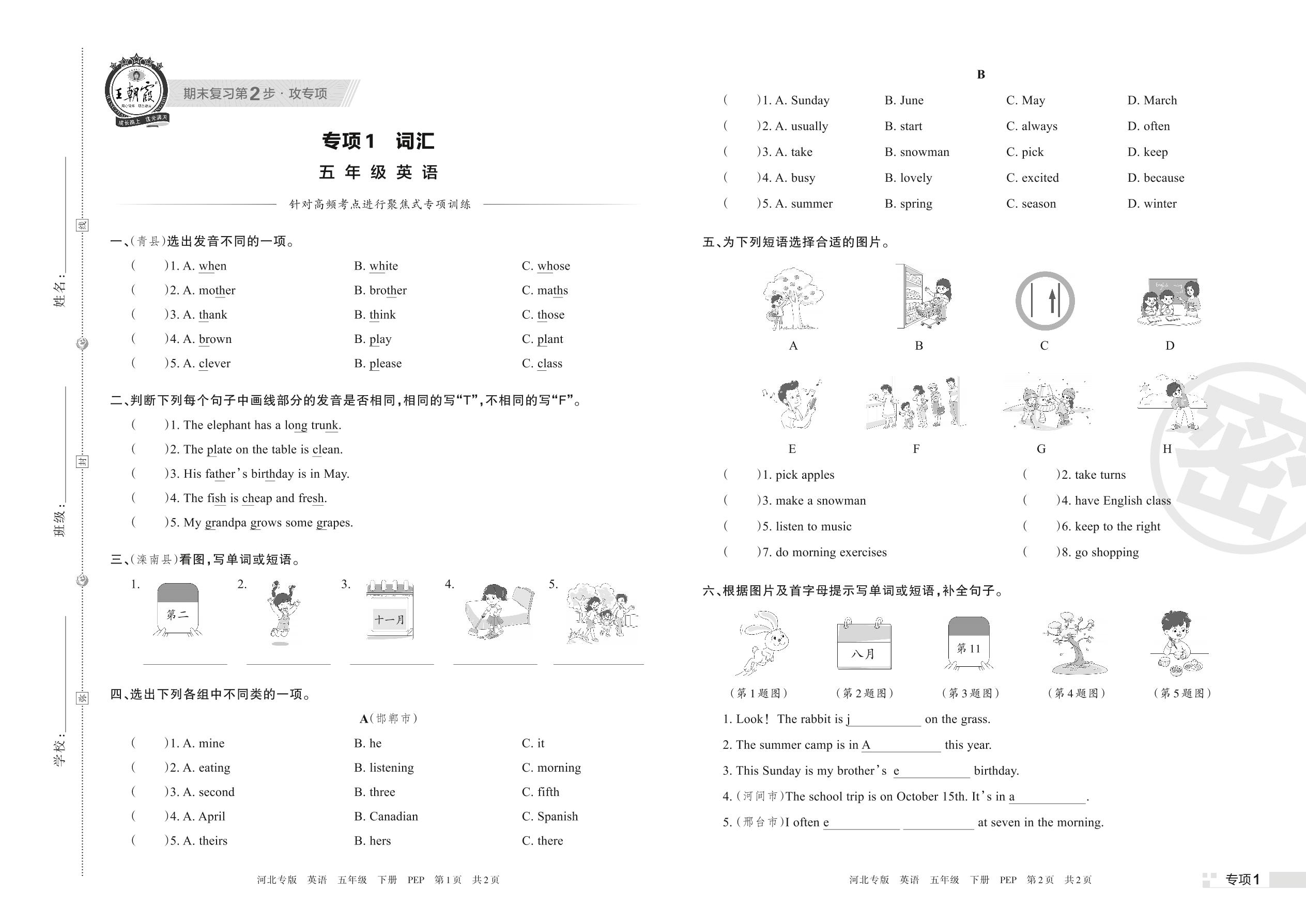 王朝霞期末专项卷——词汇五年级下册英语(PEP版)【1】