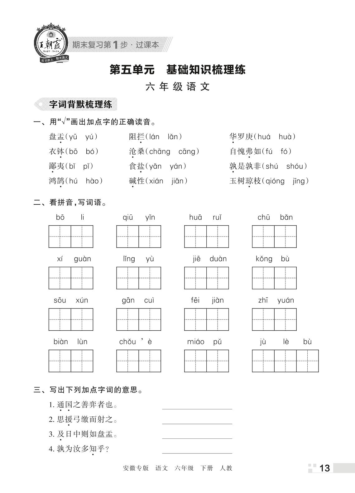 王朝霞期末过课本——第五单元 基础知识梳理练六年级下册语文(人教版)