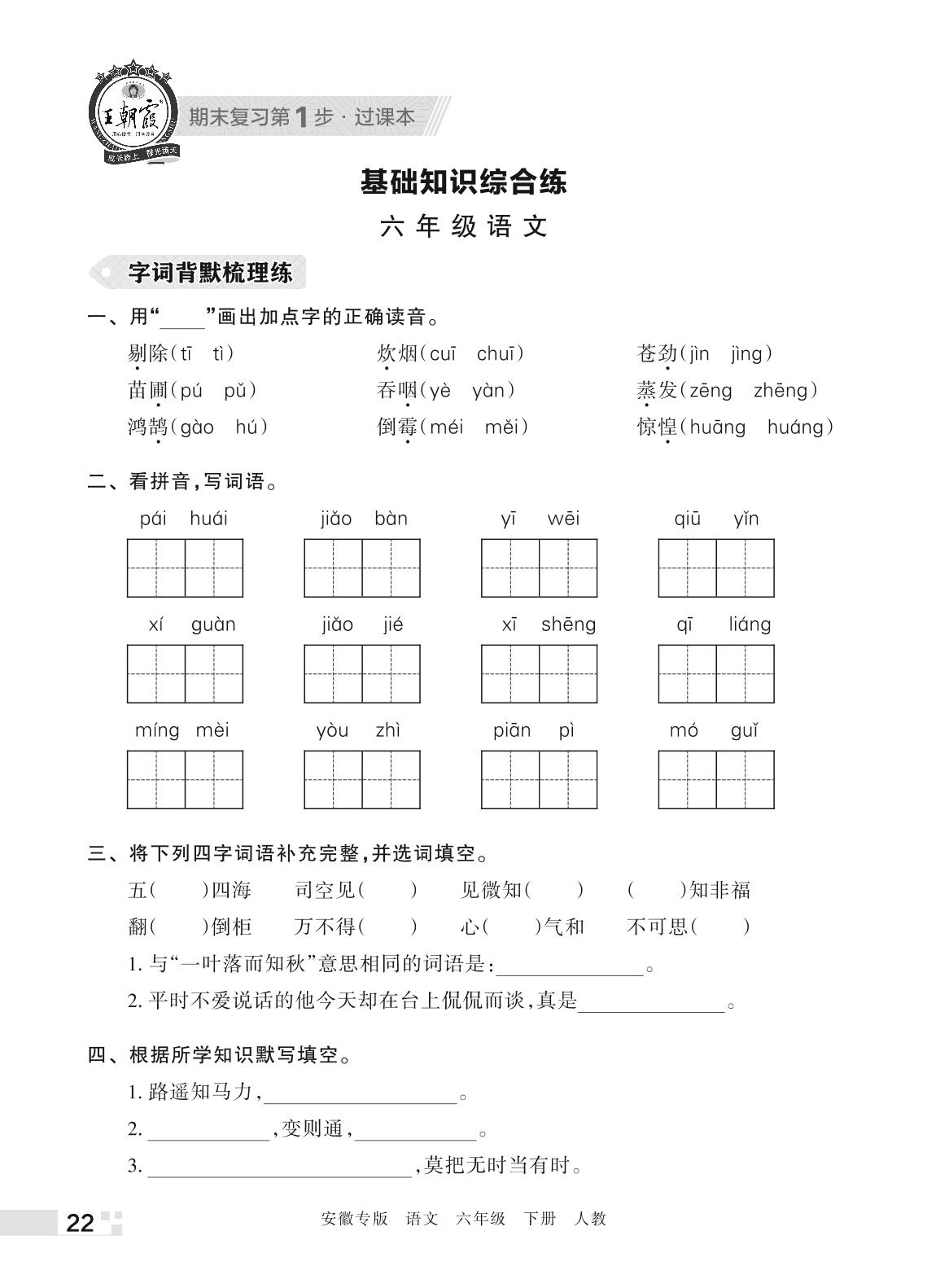 王朝霞期末过课本——基础知识综合练六年级下册语文(人教版)