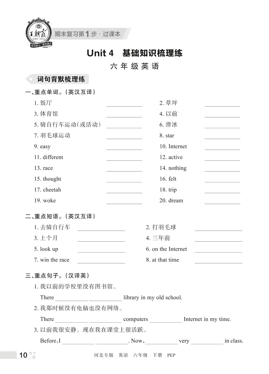 王朝霞期末过课本——Unit 4 基础知识梳理练六年级下册英语(PEP版)_R220328151601708