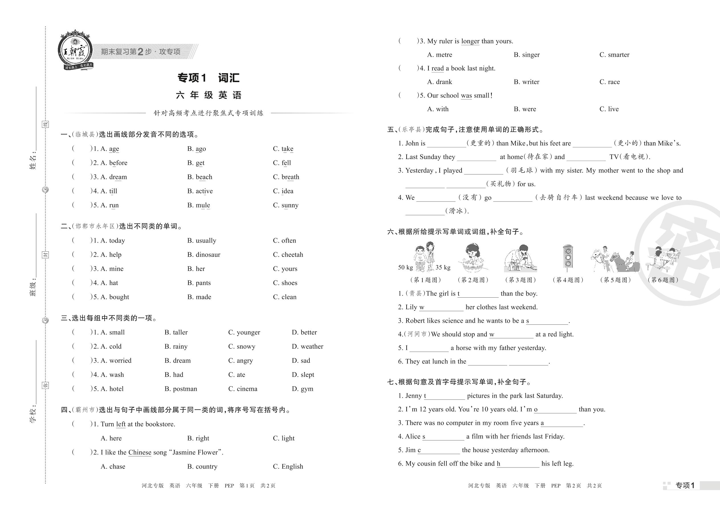 王朝霞期末专项卷——词汇六年级下册英语(PEP版)【1】