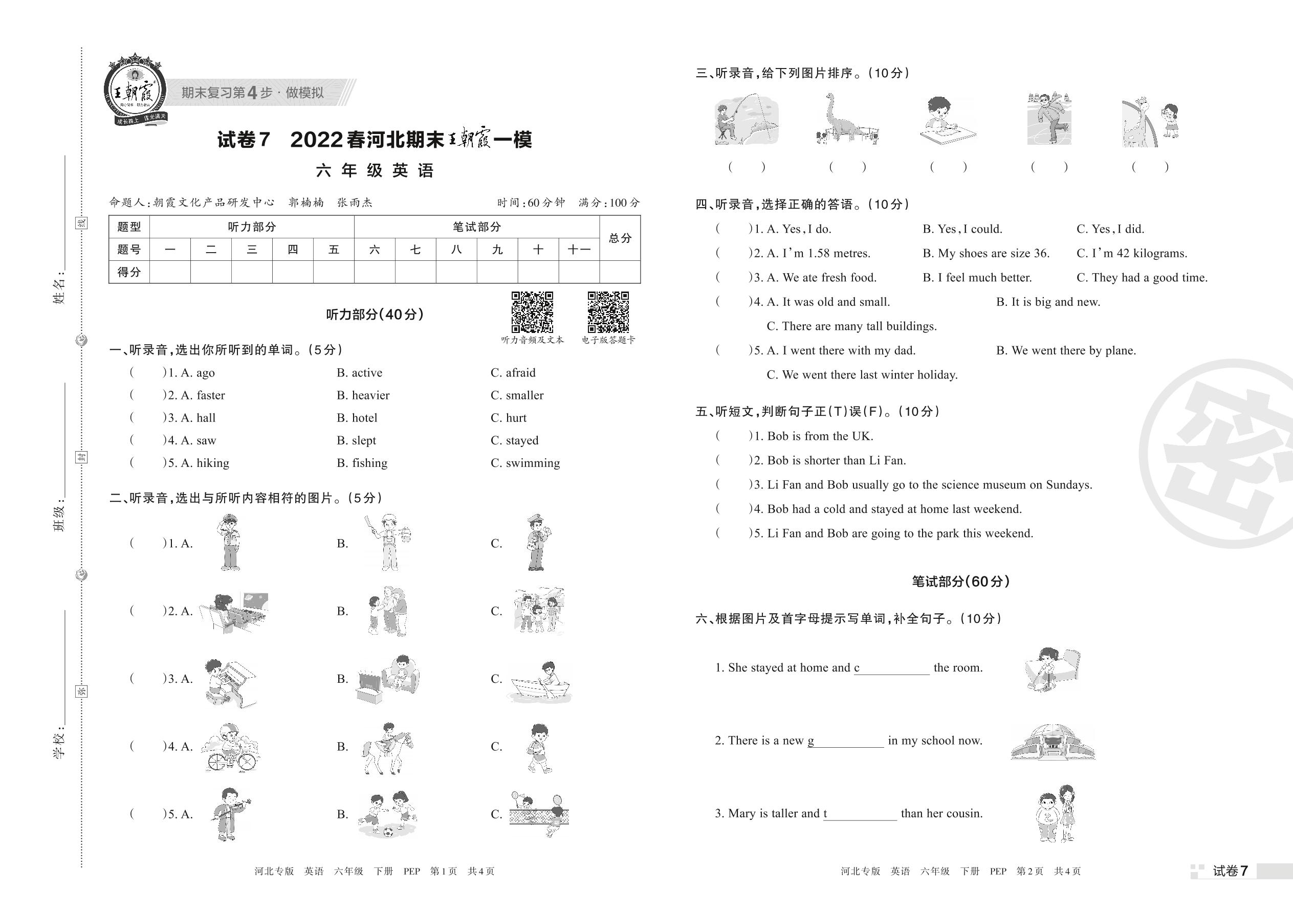 王朝霞期末模拟卷六年级下册英语(PEP版)_R220328151603384【7】