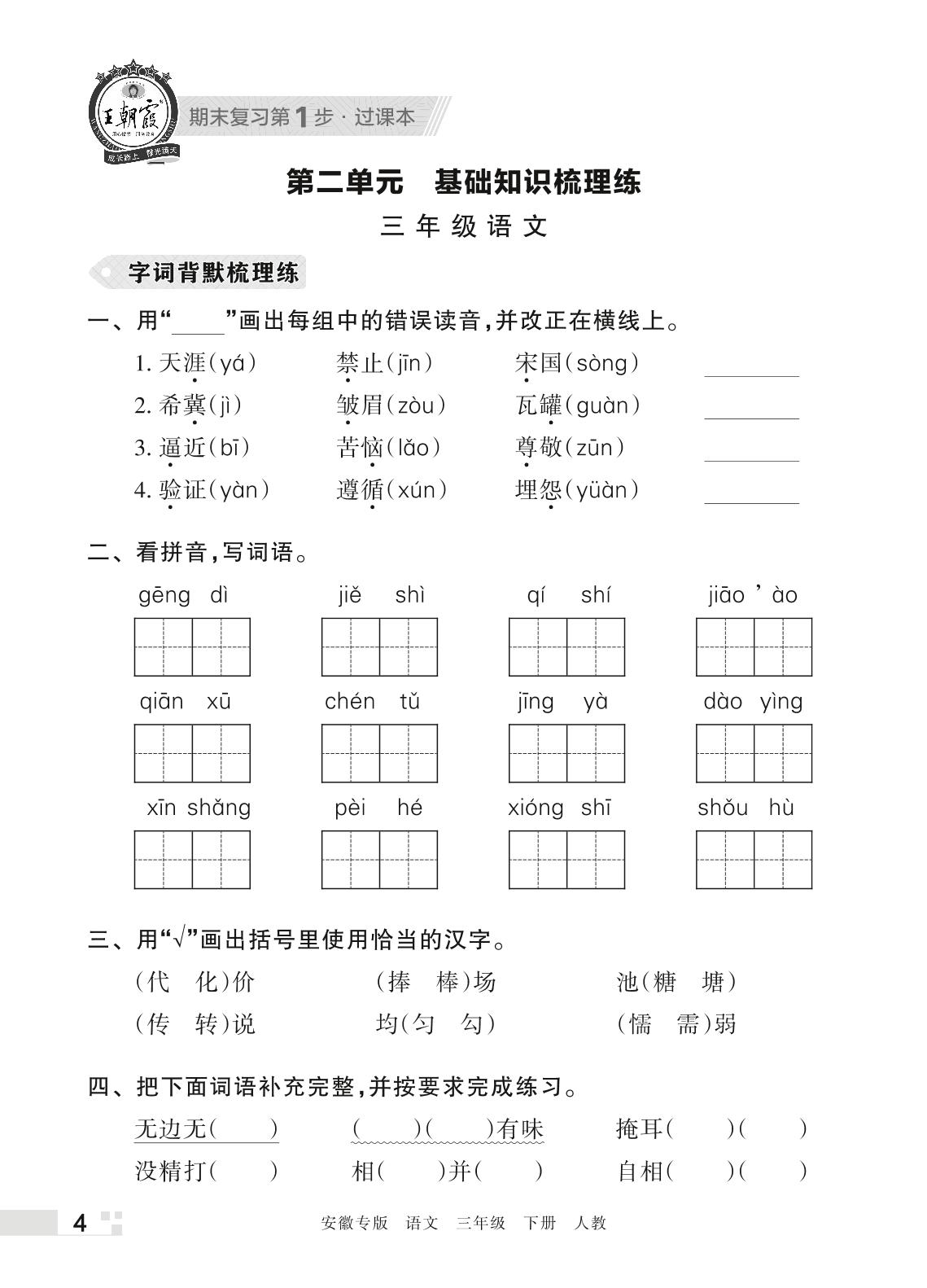 王朝霞期末过课本——第二单元 基础知识梳理练三年级下册语文(人教版)