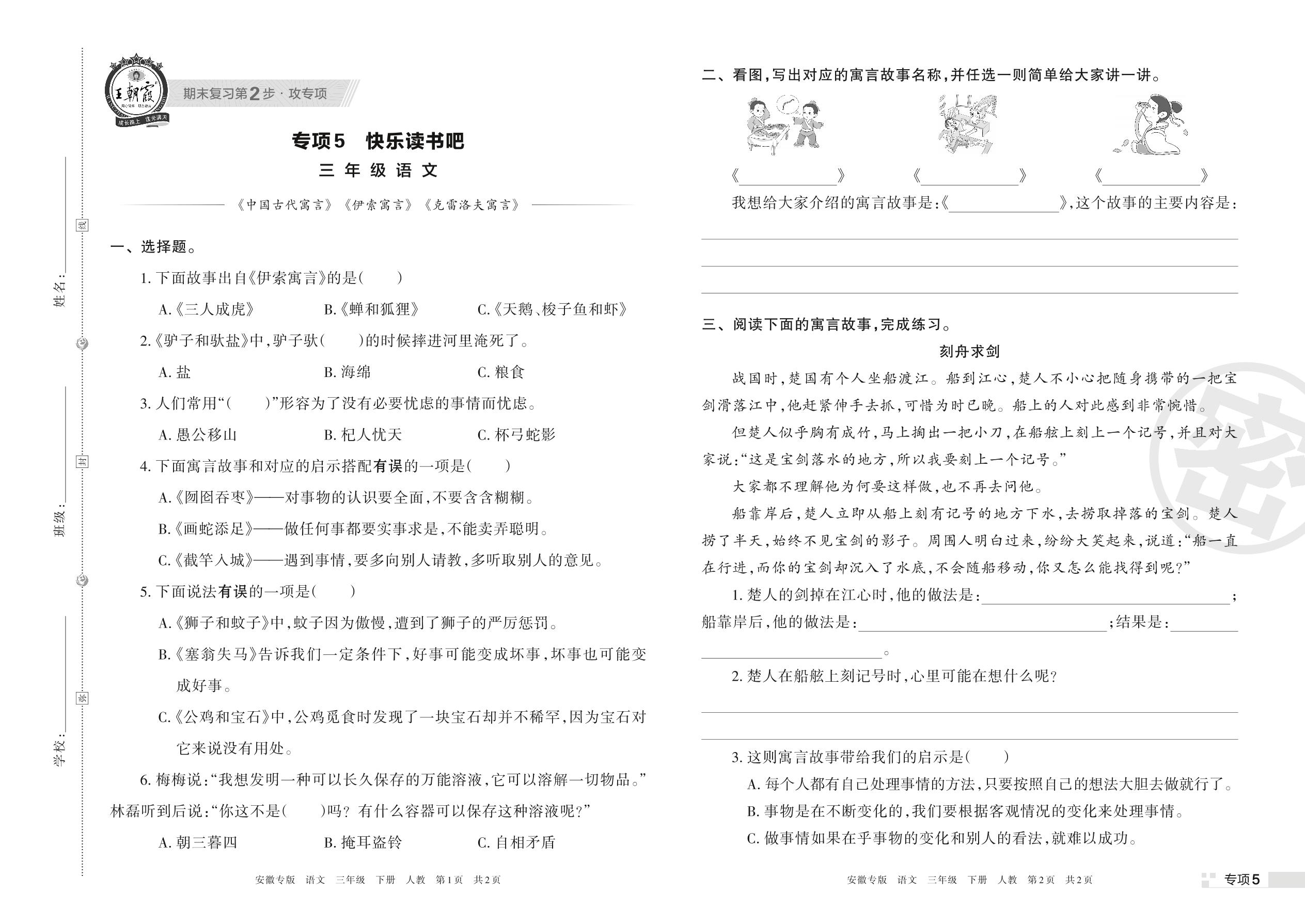 王朝霞期末专项卷——快乐读书吧三年级下册语文(人教版)【5】