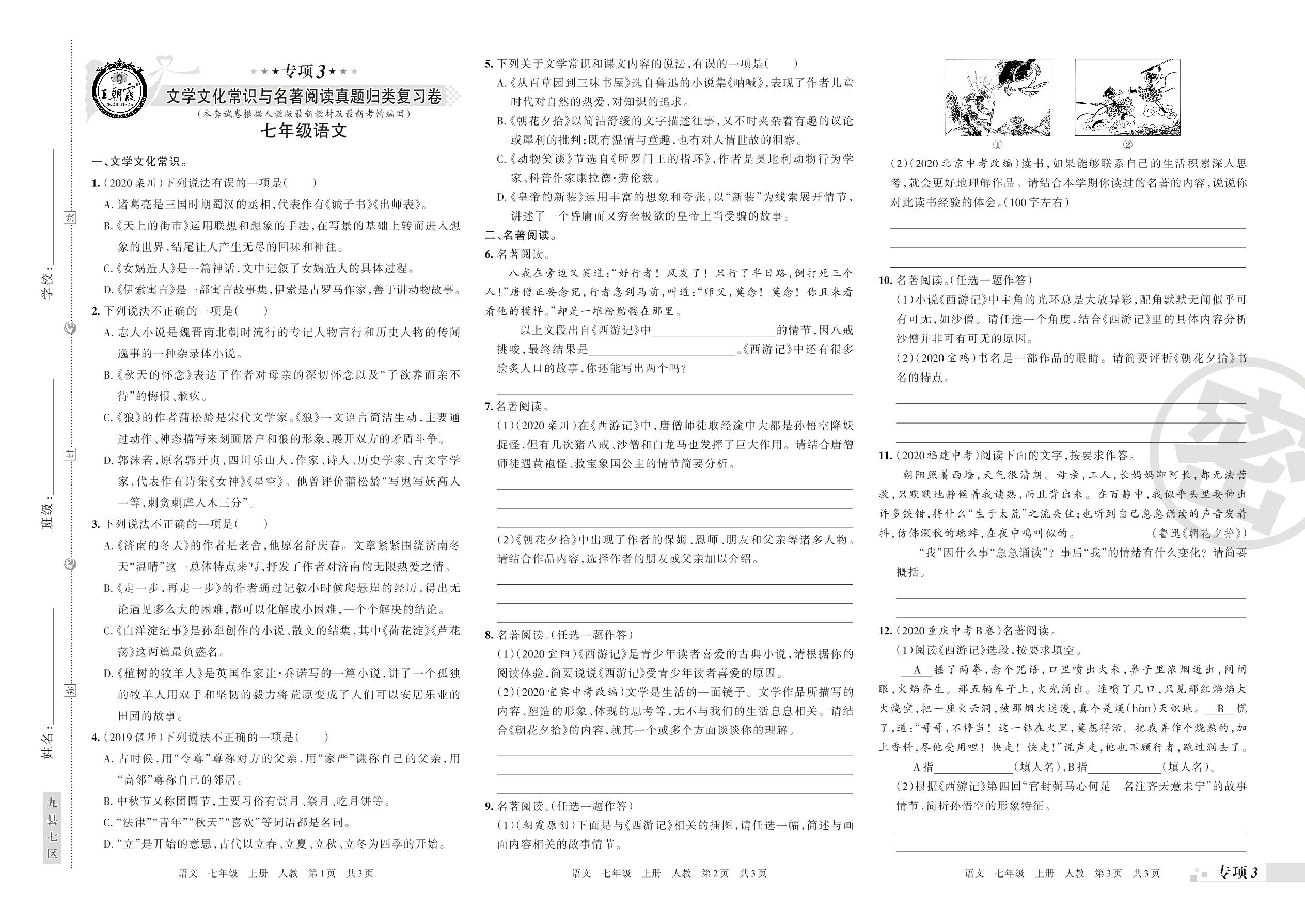王朝霞期末专项卷——文学文化常识与名著阅读、综合性学习真题归类复习七年级上册语文(人教版)_R21080213838【0】