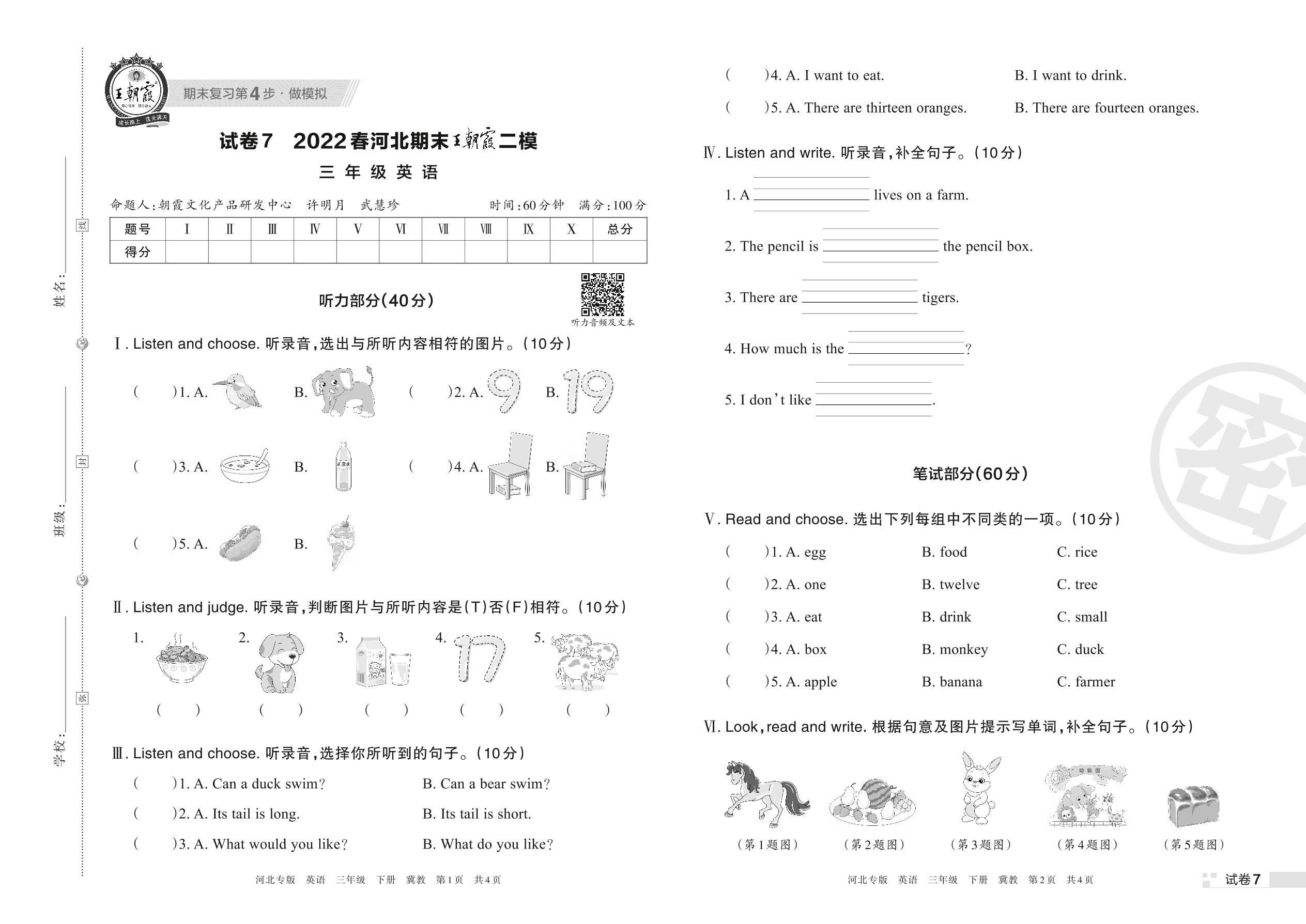 王朝霞期末模拟卷三年级下册英语(冀教版)_R220328155451250【7】