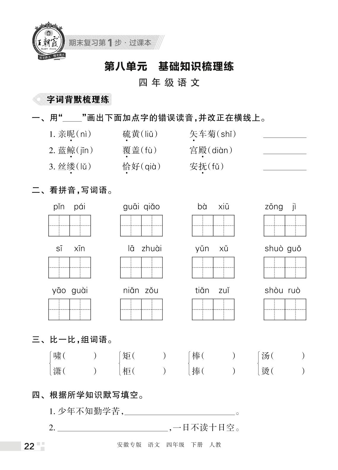 王朝霞期末过课本——第八单元 基础知识梳理练四年级下册语文(人教版)