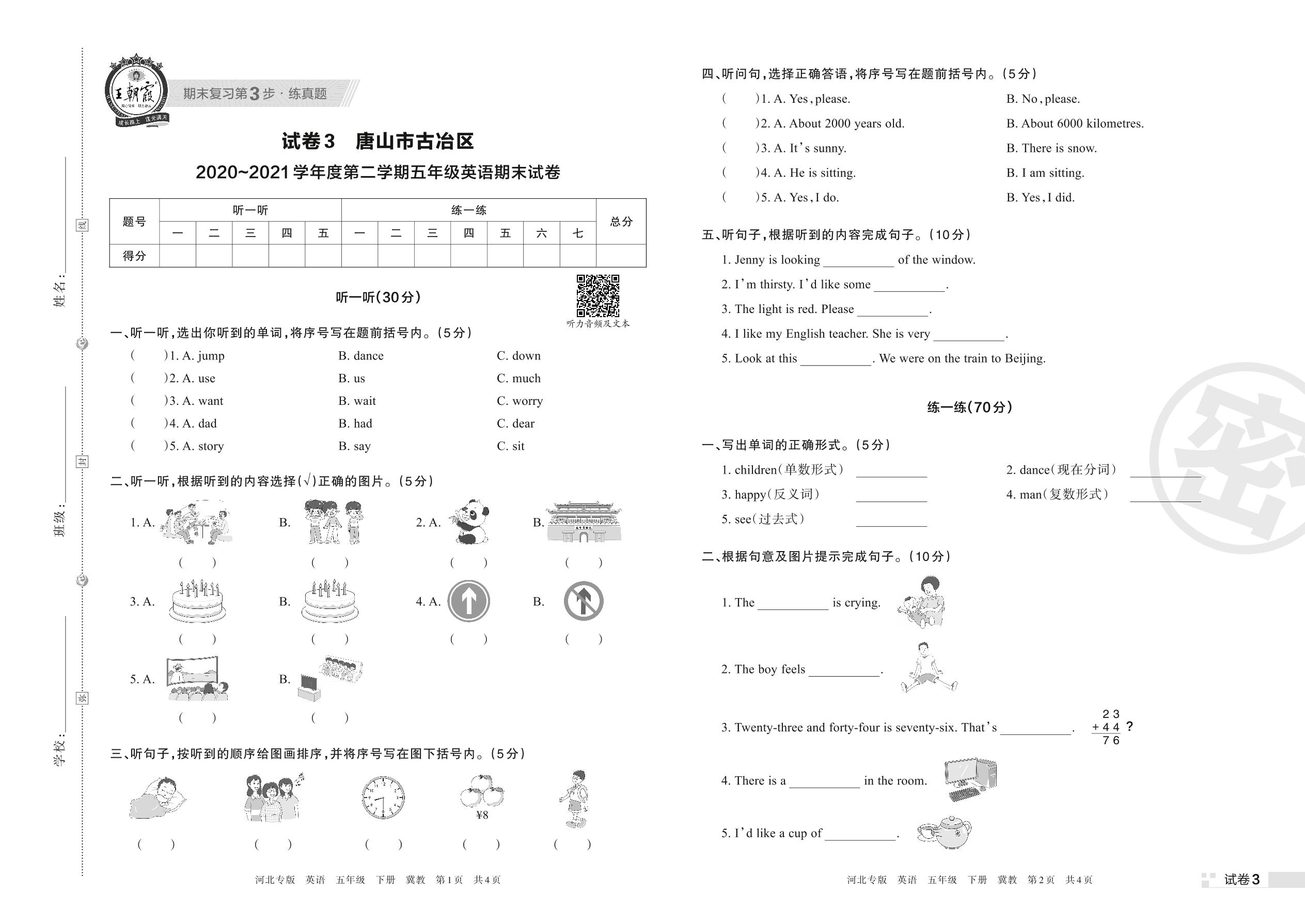唐山市古冶区2020~2021学年度第二学期五年级英语期末试卷(冀教版)【3】