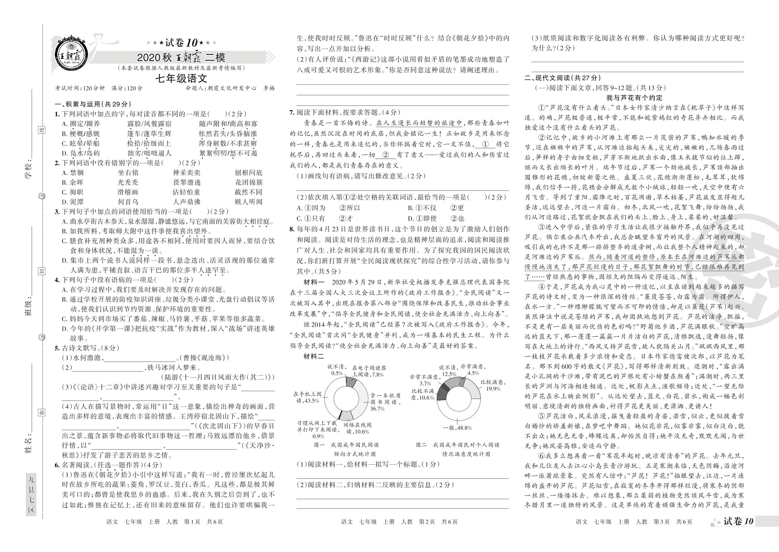 王朝霞期末模拟卷七年级上册语文(人教版)_R21080214106【10】