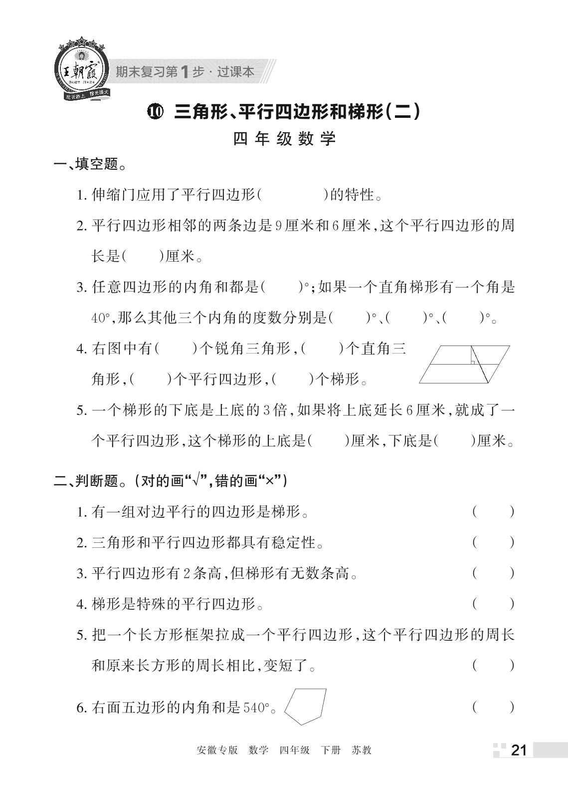 王朝霞期末过课本——10 三角形、平行四边形和梯形(二)四年级下册数学(苏教版)