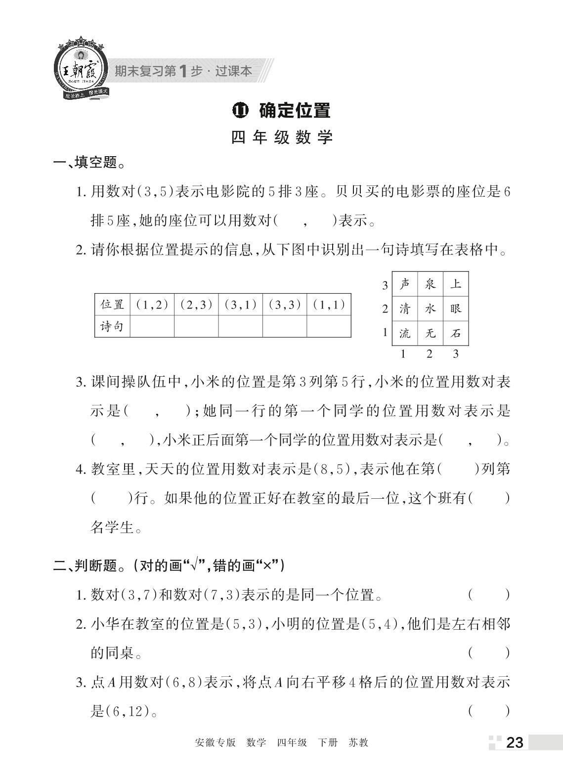 王朝霞期末过课本——11 确定位置四年级下册数学(苏教版)